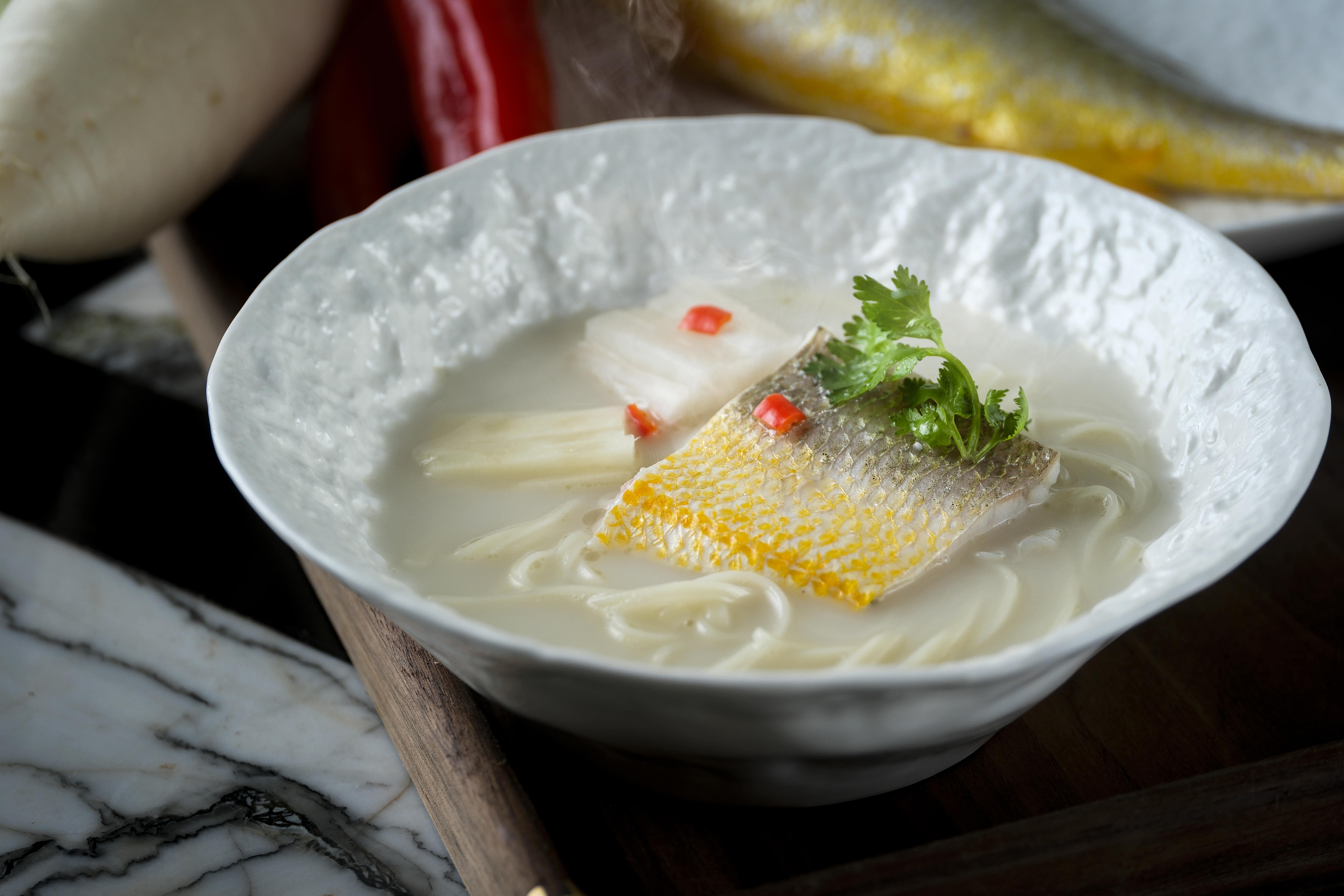 主食方面心水是「自家泡酸蘿蔔煮海黃花.手打烏冬」驚喜十足,每日只限量製作30碗,純魚湯湯底用上五斤鯽魚熬煮,鮮甜奶滑。黃花魚以用人手拆骨起肉,再用鹽醃一晚,吹至半乾後肉質更為緊緻,配上師傅自家醃製15天以上、酸爽開胃酸蘿蔔,一口彈牙手打烏冬,一口順喉魚湯,非常滿足。