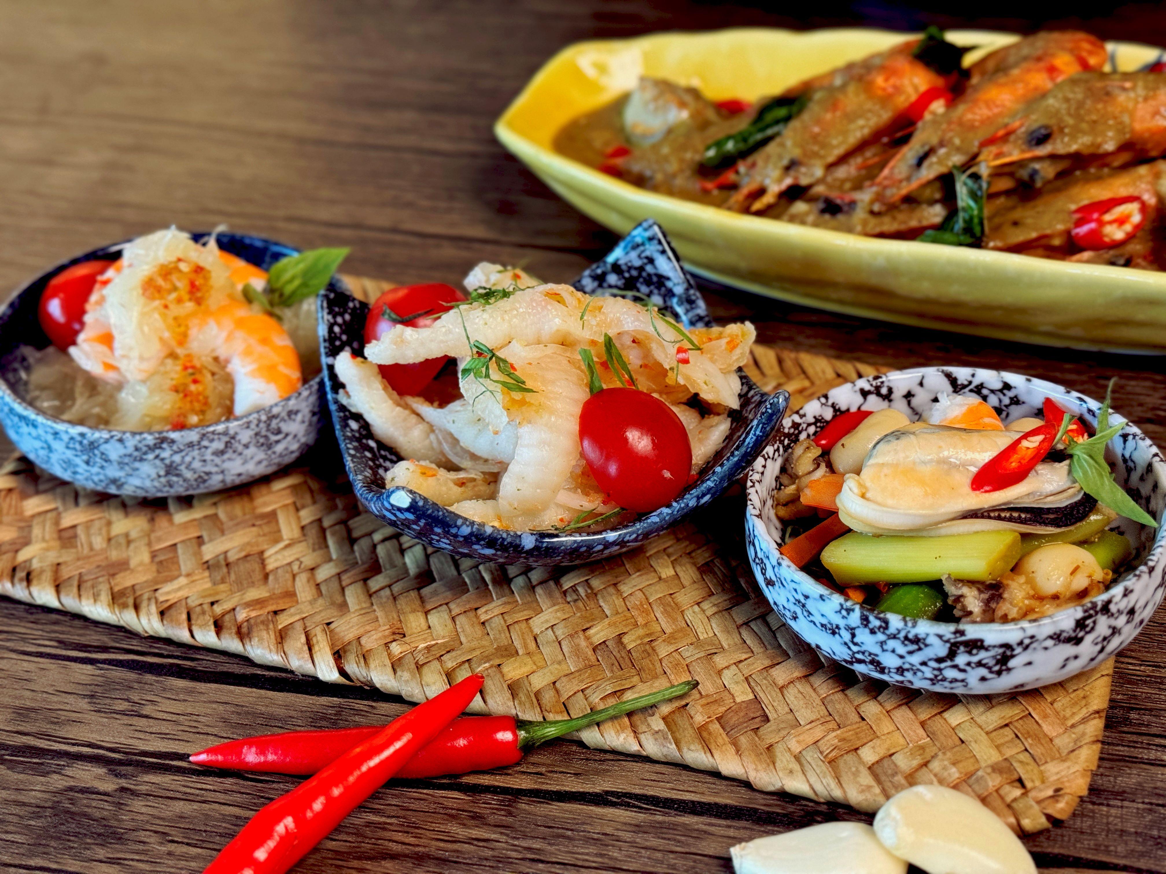 泰饗時光海鮮自助餐提供琳琅滿目的新鮮海鮮及泰式風味料理,新鮮海鮮包括每日兩款空運到港的法國、美國或愛爾蘭即開新鮮生蠔,另有鱈場蟹腳、紐西蘭青口、海蝦及海螺等冰鎮海鮮,選擇豐富!刺身及壽司區亦會無限提供即點即切的新鮮刺身,包括三文魚、鯛魚、阿根廷紅蝦及各款壽司等。開胃前菜包括一系列極具泰式風味的冷盤有,如泰式無骨鳳爪沙律、泰式柚子蝦沙律、泰式肉碎沙律、泰式海鮮沙律等,惹味醒胃。其餘的泰式風味美饌包括冬蔭功海鮮煲、魚湯海鮮煲、泰式香茅燒春雞、泰式青咖喱大蝦、泰式肉碎炒飯等,風味滿分!自助餐亦有多國美食,如滋補紅燒花膠伴花菇、肉汁豐腴的燒牛肉及燒羊扒、惹味椒鹽軟殼蟹、紅酒燴牛肋條及碧綠炒蝦球等,總有一款合你心意!