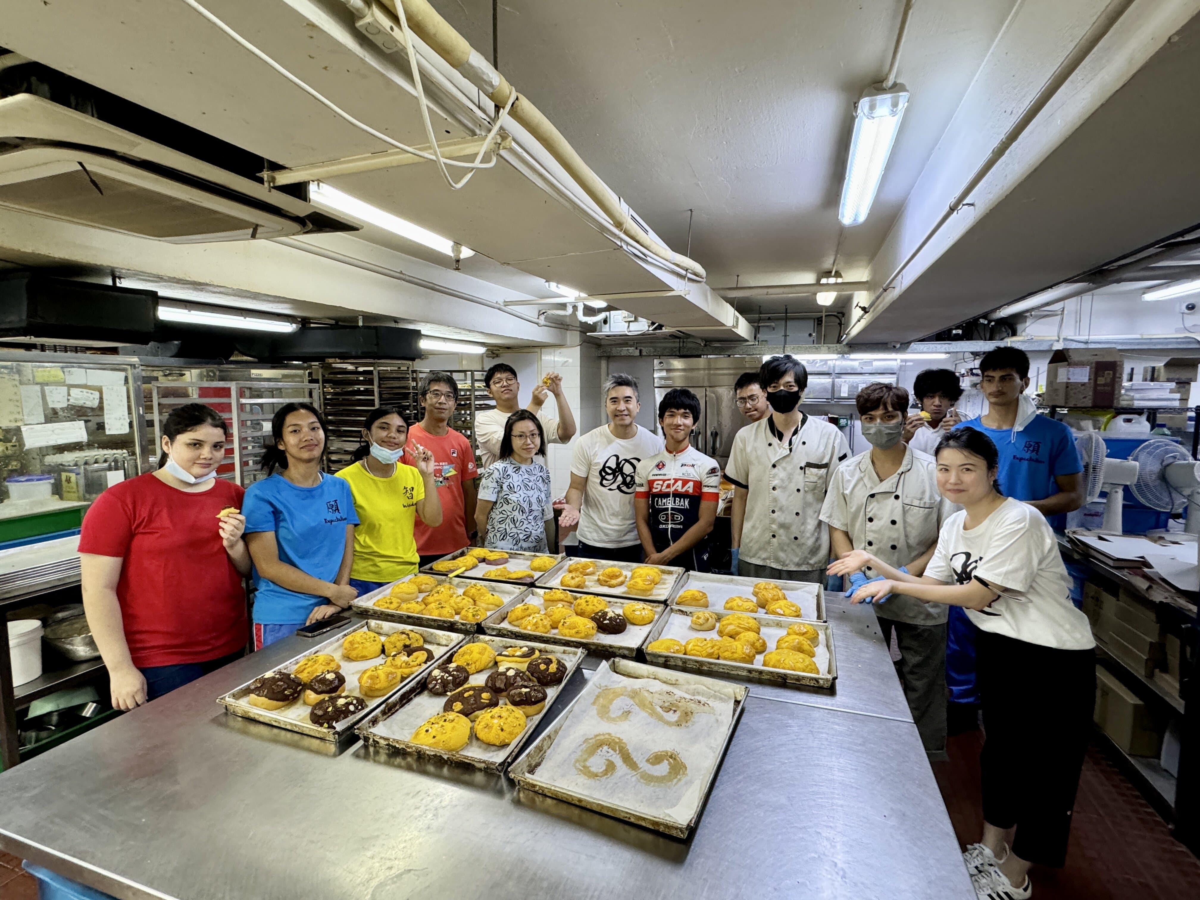 佛教筏可紀念中學學生到太子餅店工場親手烘焙。 「小不點子」創意教育課堂提供機會讓學生發揮創意,做出笑哈哈菠蘿包。 「小不點子」創意教育課堂的試味環節。 「小不點子」創辦人徐俊文引導學生運用創意。