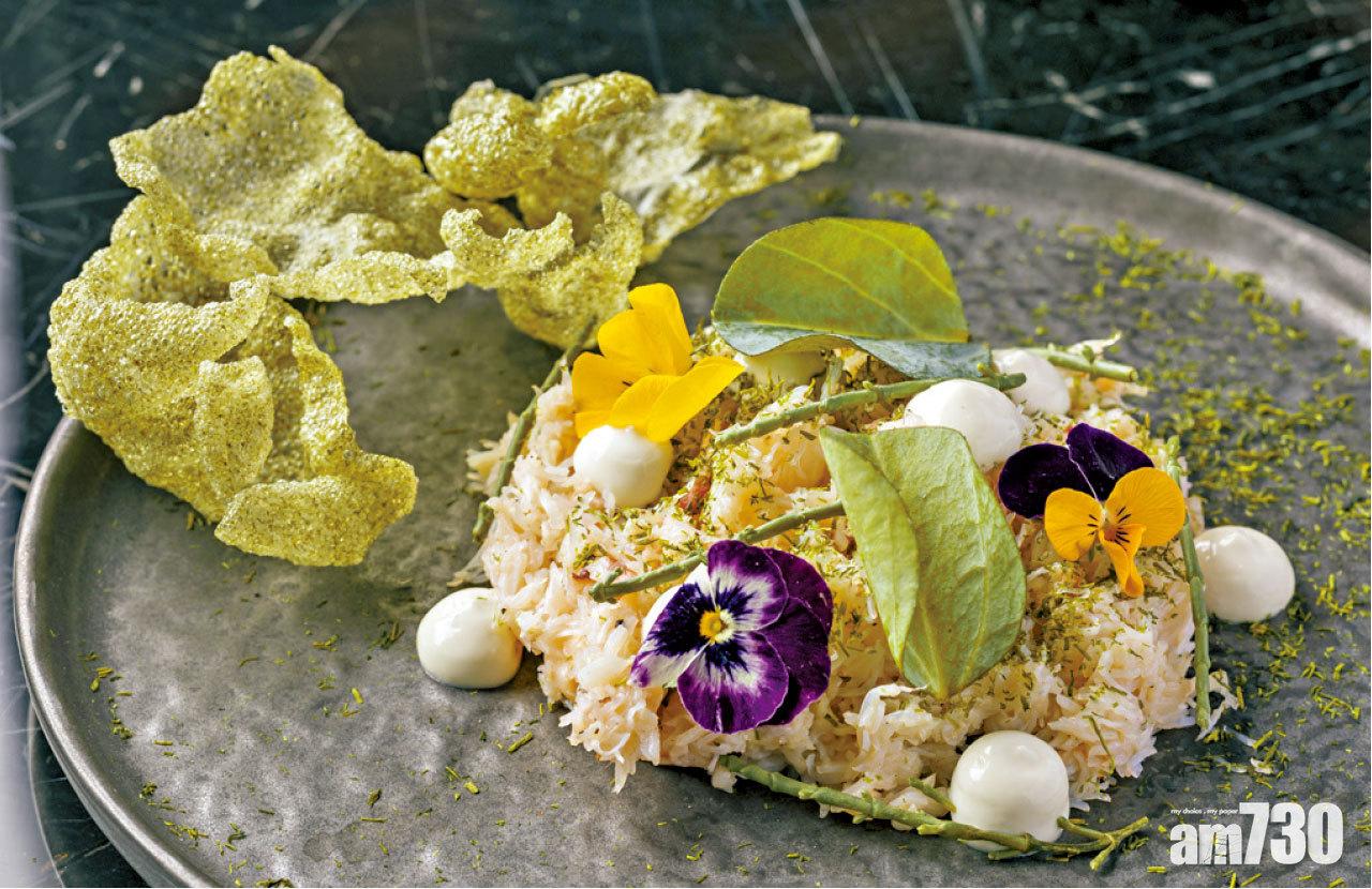 香港限定菜式Irish Crab,一道十分有趣的傑作,鋪滿愛爾蘭蟹肉佐以海苔脆片,當中蠔鮮蛋黃醬汁及蠔葉為蟹肉加多一重濃郁的蠔香。$160