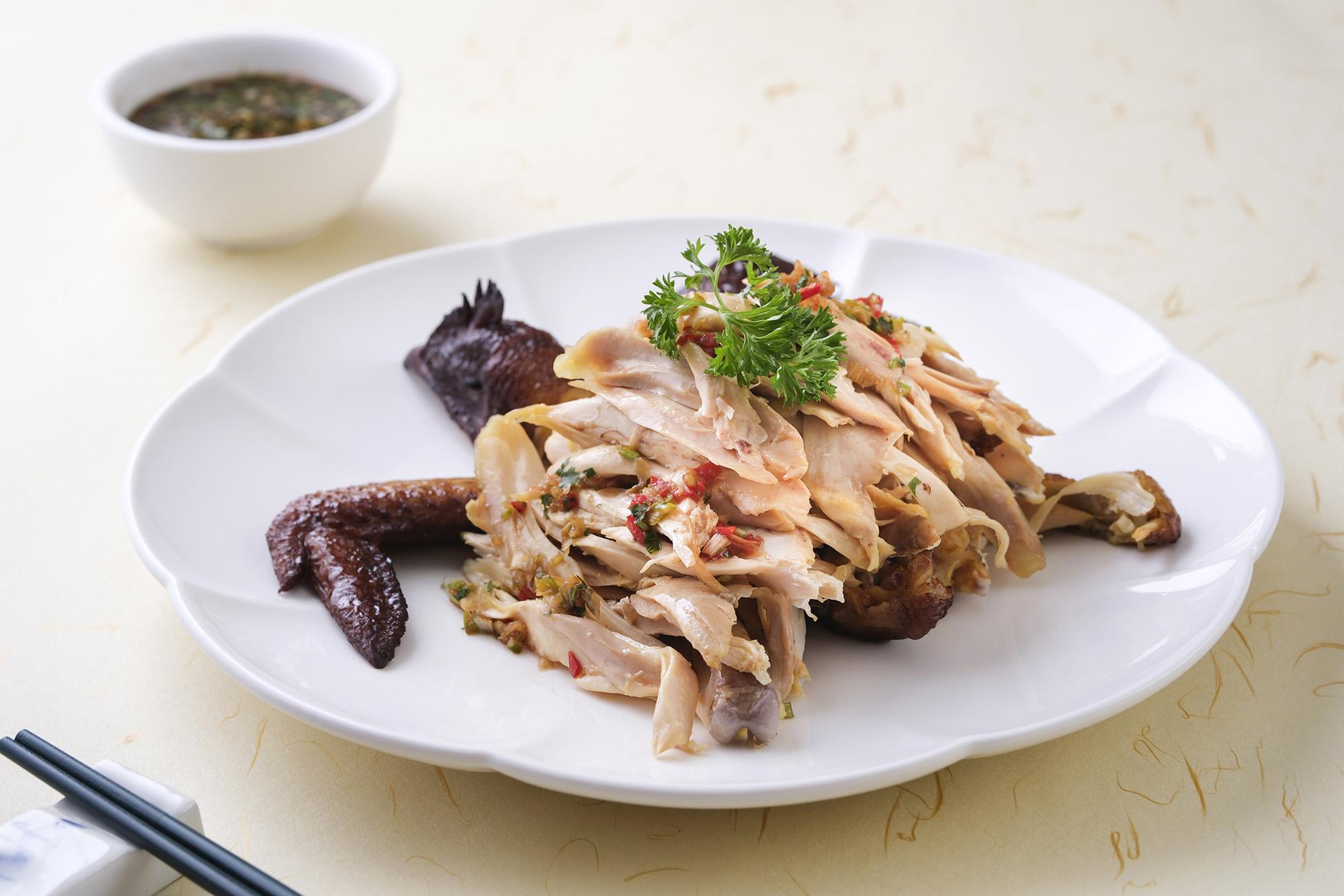 山東燒雞(半隻$148/全隻$288)─山東招牌菜!人氣菜式之一,選用約兩斤重的本地三黃雞,抹上醃料後靜置三小時以便入味,然後採用先炸後蒸的方式鎖住鮮嫩肉汁。手撕的雞肉皮薄味濃,搭配自家製的靈魂蒜汁,美味無比。