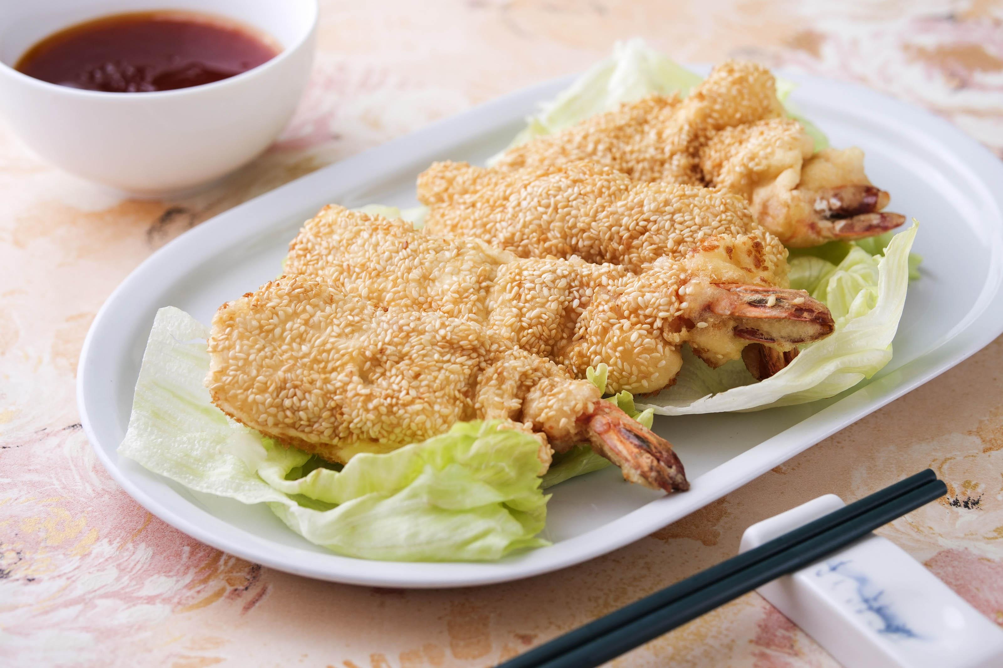 高力鳳尾蝦(每隻$108元,兩隻起)─以綿密蓬鬆的蛋白,包裹肉厚爽彈的越南鳳尾蝦,賦予其別具空氣感的軟滑層次;蘸以京式甜酸醬,更能細味蝦肉的鮮味。
