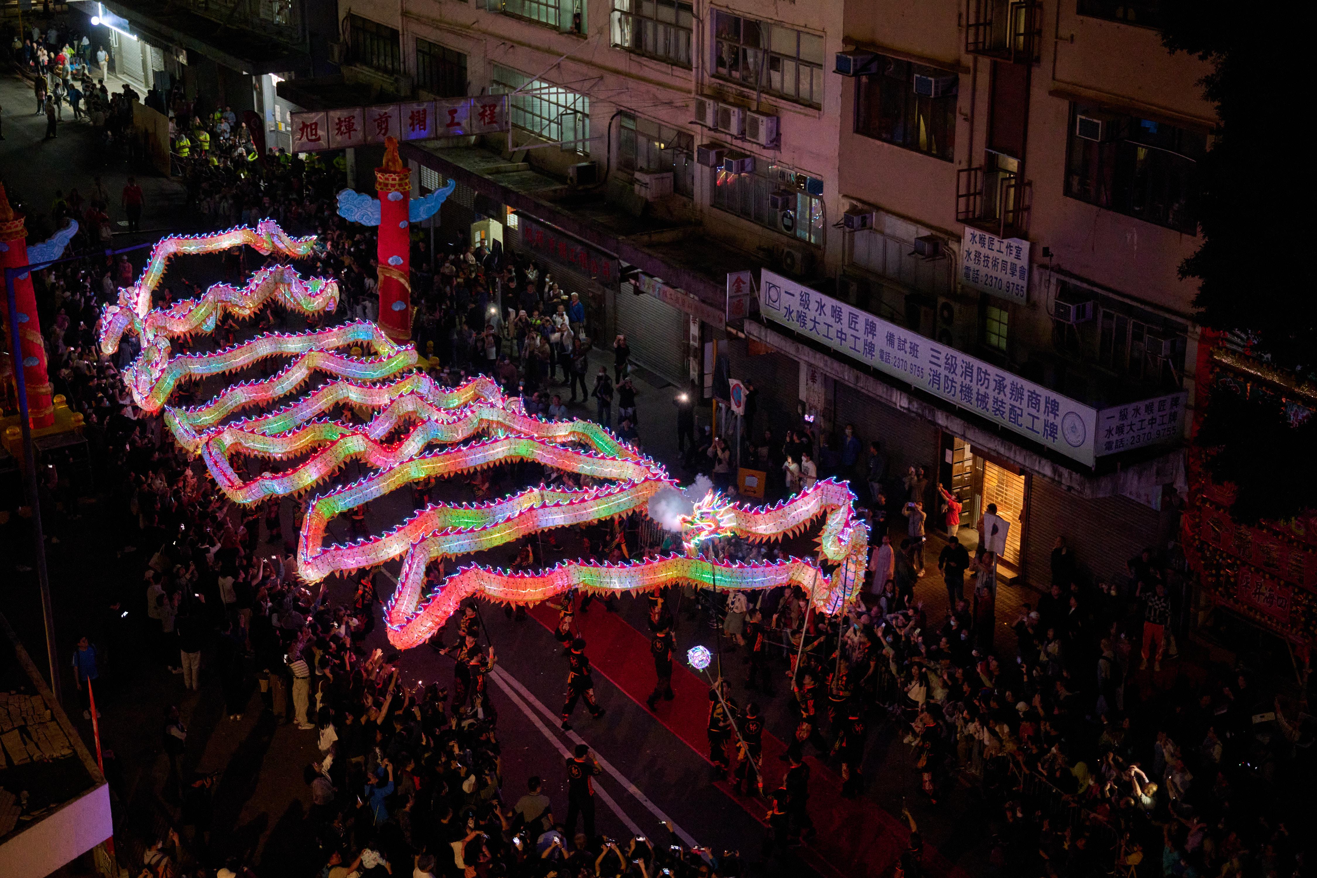 大角咀廟會壓軸焦點|全港最長500呎炫彩夜光龍舞動廟會