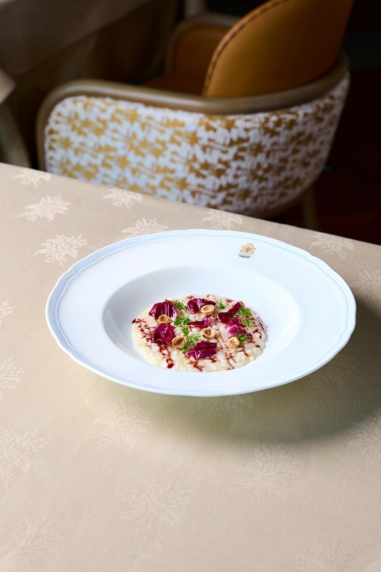 意大利飯配阿希亞格芝士、濃縮意大利阿瑪羅尼紅酒、紅菊苣及榛子
