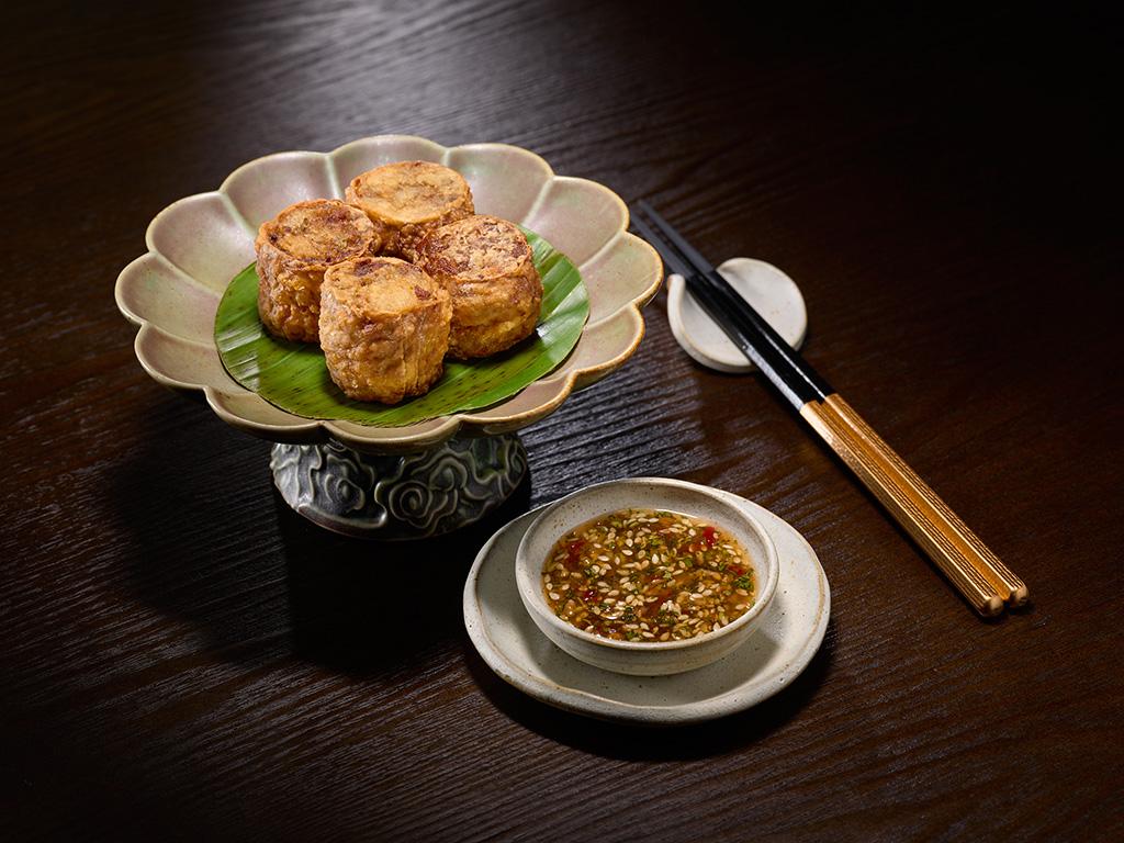 •馬友魚、香辣梅菜─馬友魚醃漬後風乾兩三天,梅菜與馬友魚骨、薑、蔥及八角一同熬煮再加入米酒及壽司醋,配以大白菜以增添爽脆口感。