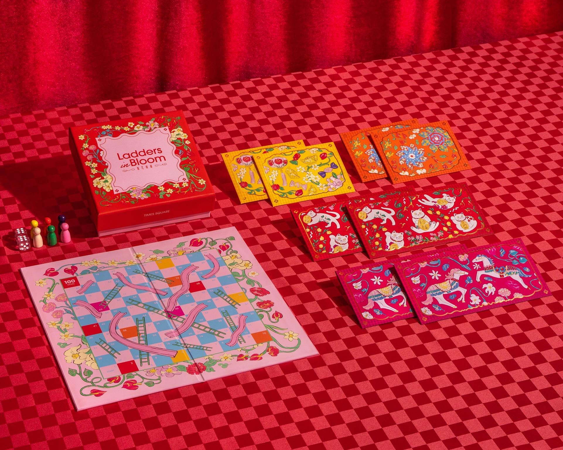 盛載於精美禮盒的「萬花棋緣」棋盤遊戲則以經典梯盤棋遊戲為靈感,內裡包含摺叠棋盤、6粒彩色棋子及兩粒骰子,適合新年聚會中與親朋好友一同創造歡樂回憶。
