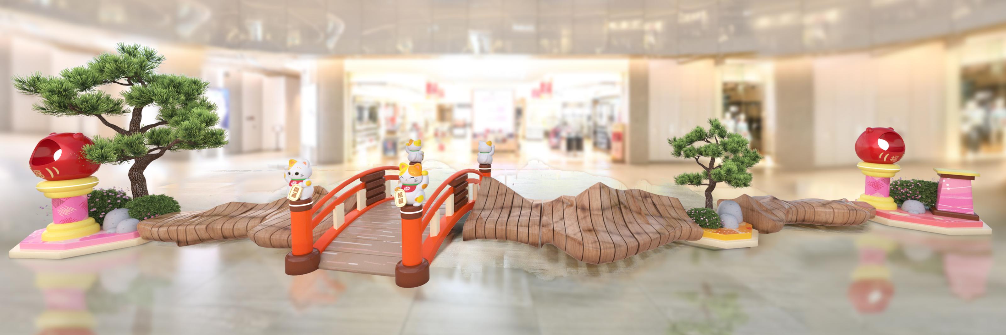 別忘記還有「喵喵洗滌之橋」,與橋上的可愛招財貓打招呼。有傳站在其中一座「萌喵愛情石」旁,若能閉起雙眼後,成功走到另一座石像,即代表新一年愛情人緣暢旺!於「甜蜜結緣神社」及「捕手湯泉」能看見萌喵向人招手,有興趣不妨在神社祈福,增強新一年戀愛運勢。二樓的「喵之祈園」更可以欣賞日式庭園的簡樸之美。最後站在「圓碌碌幸運達摩陣」與88個達摩合照,留下特別回憶。