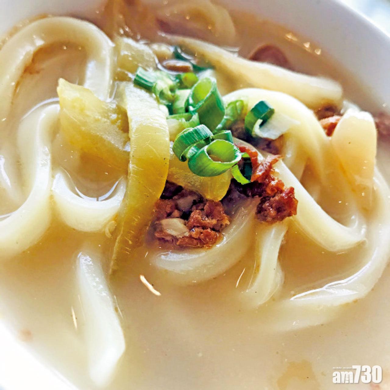 酸辣肉燥手打烏冬,加入絲絲鹹酸菜,加上微辣非常解膩,手打烏冬煙韌無比。