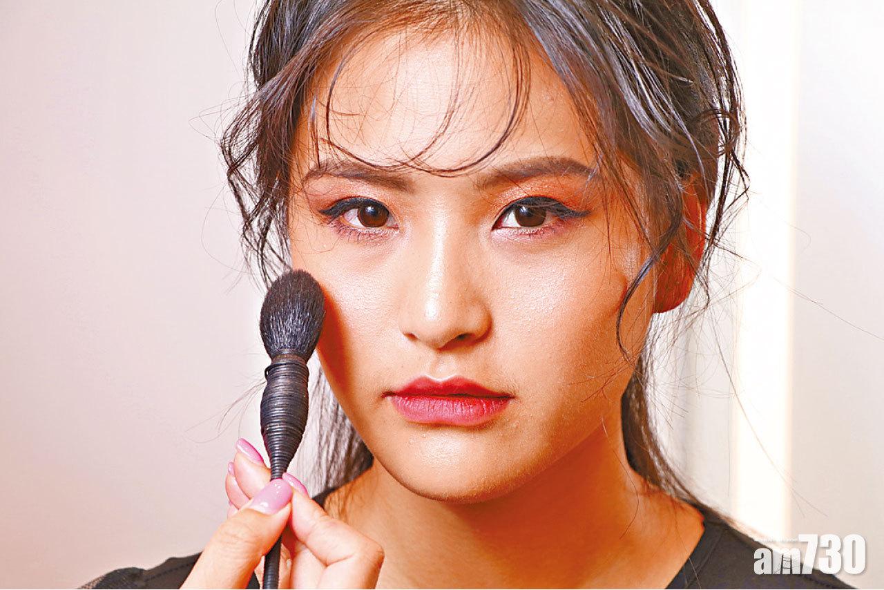 Step 2: 胭脂用上3色的Star Scene Cheek Palette,在由面頰中間向後掃上右邊的莓紅色,之後混合左邊的蜜桃香檳色及中間的糖果粉紅色,掃上蘋果肌作提亮。