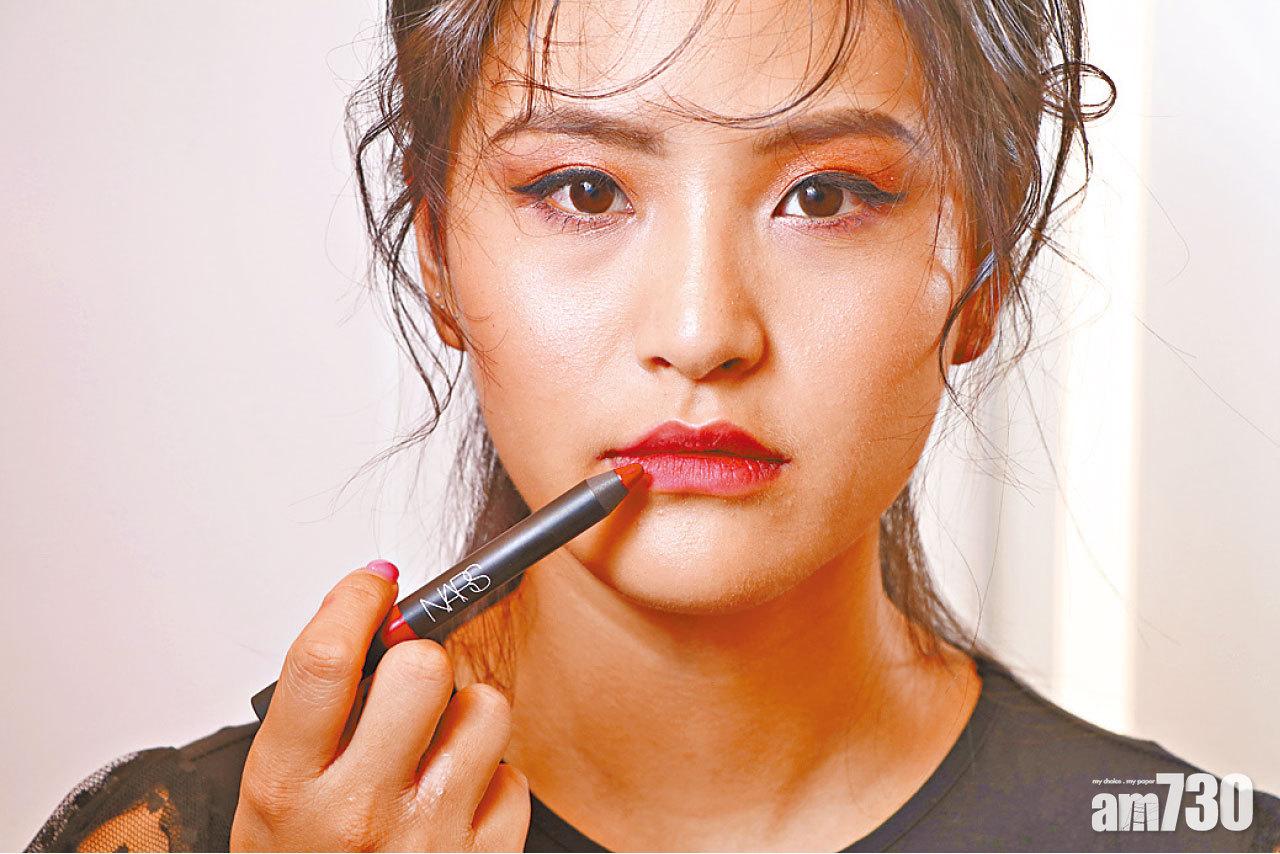 Step 3: 唇妝方面,先在唇中央位置塗上熱情深紅色的CRUELLA,之後沿唇邊塗珊瑚色的MELODY N,之後以唇掃印開,打造漸變唇妝。