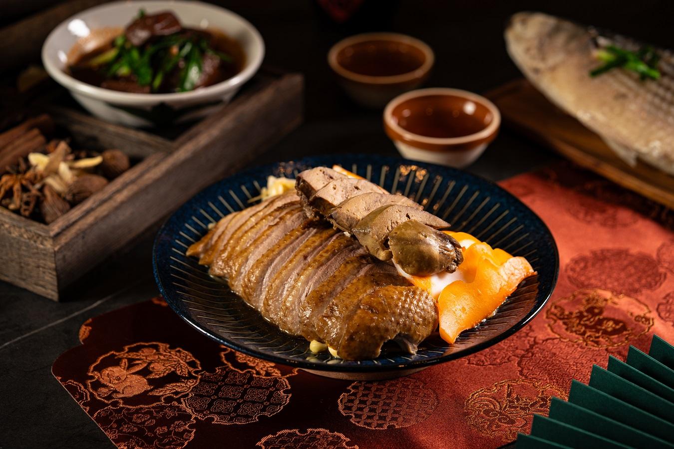 潮汕滷水鵝、滷水墨魚、滷水鴨肝等,以秘製滷水煮製,肉質嫩滑、滷汁濃郁。同時亦準備一系列港式風味菜,包括韭菜豬紅、鹹菜豬肚、麻辣東風螺等。甜品方面,有酥脆的薩其馬拔絲塔,將傳統薩其馬和拔絲技術結合,外層酥脆與內部鬆軟,帶來獨特味覺體驗。以及絲滑的鐵觀音朱古力慕絲蛋糕,濃郁的鐵觀音茶香和柔滑的朱古力慕絲,每一口都充滿甜蜜驚喜。
