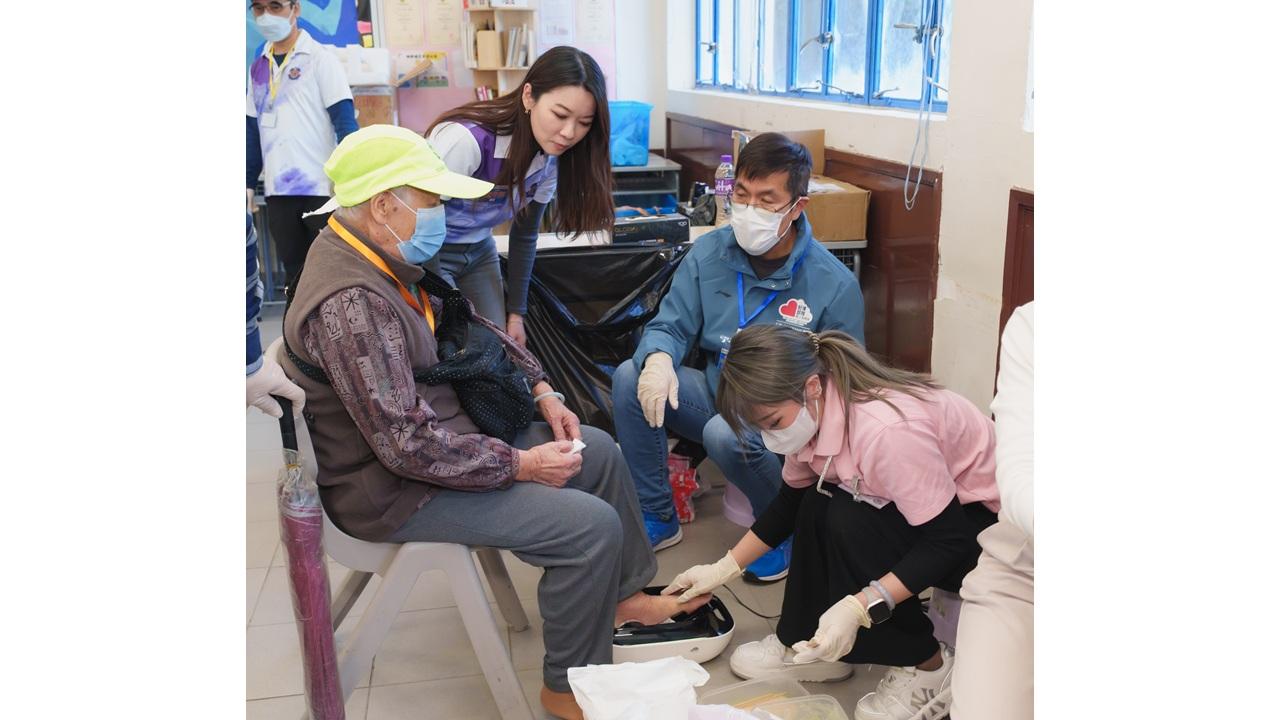 大會主席危月瑩身體力行與義工一起為長者檢測。