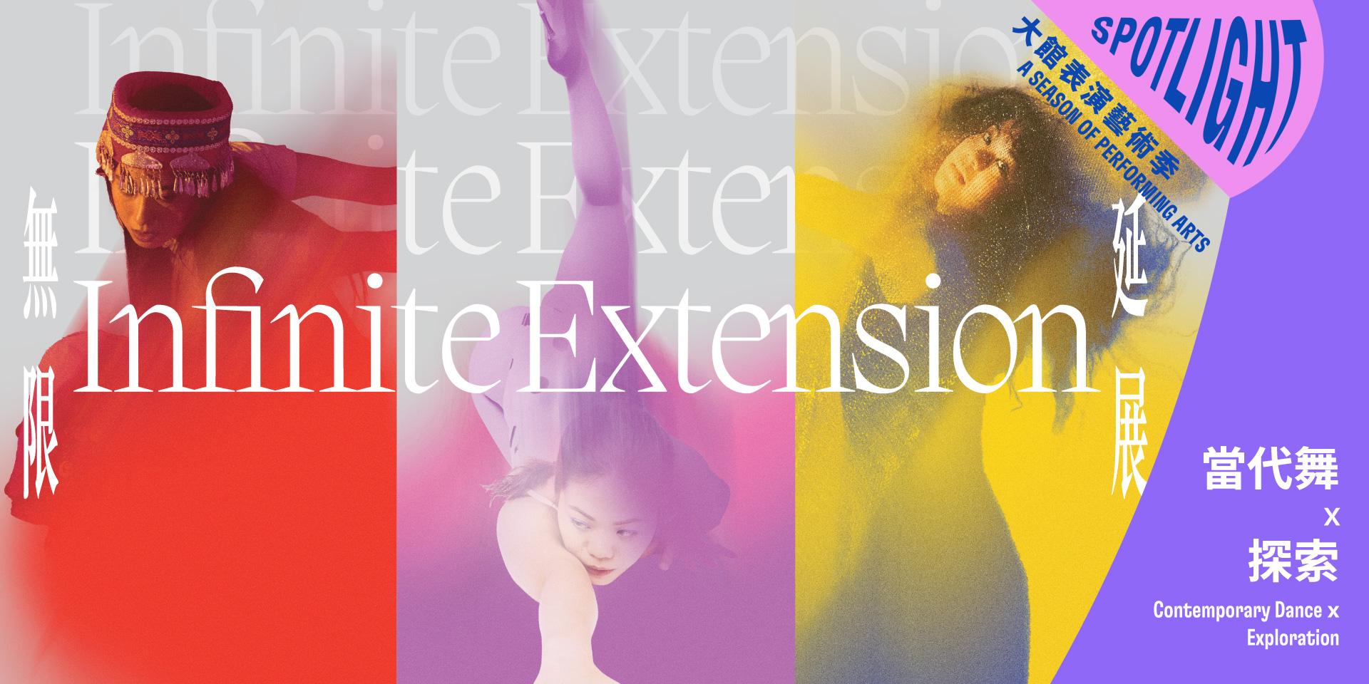 《無限延伸》聚集香港及廣州3位青年編舞家,他們將從自身角度及經驗出發,透過現場表演、參與式展演及舞台裝置,喚醒觀眾對身體的省思和對空間的感知。