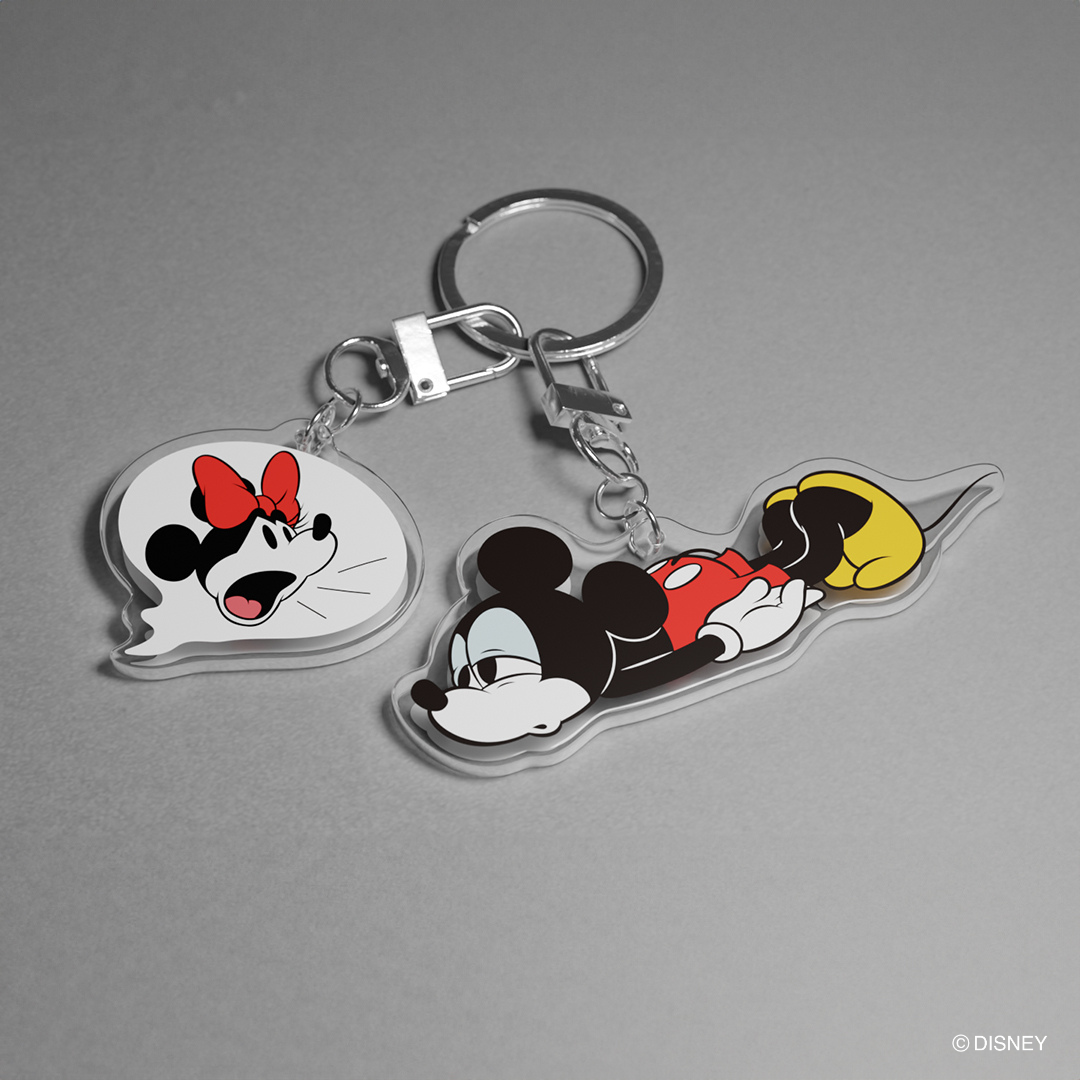 MO亦推出時尚的迪士尼服裝與飾品:炭灰色主調的迪士尼系列洗水Tee,以洗水工藝打造褪色效果,背面印上色彩鮮明的復古米奇圖案;迪士尼系列手提布袋百搭簡約。另有亞克力鑰匙圈,提供米奇與米妮、唐老鴨、高飛及大鼻與鋼牙4款選擇。