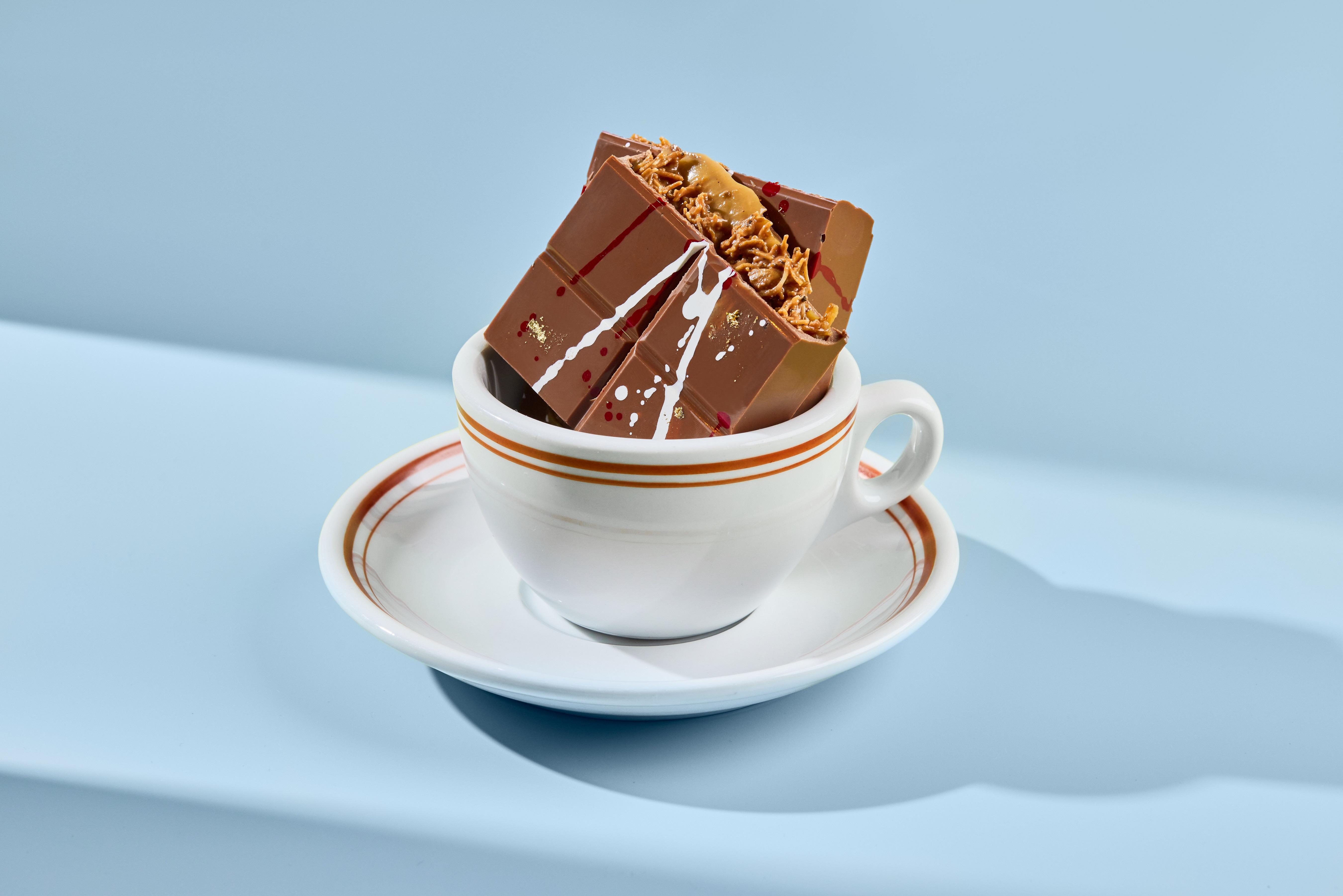 手工港式奶茶脆脆朱古力,分為兩層:上層為杏仁朱古力醬混合錫蘭紅茶粉配以Kataifi酥絲,咬下啖啖酥脆;下層濃郁的奶茶朱古力軟心醬,以錫蘭紅茶、淡奶及忌廉調製成。兩層朱古力帶出不同濃郁質感,流露出香港地道茶餐廳經典奶茶風味。此款脆脆朱古力售價$320,與杜拜朱古力同價。網店同時也發售趣致的復活節開心果形狀朱古力、朱古力復古兔、復活蛋胡蘿蔔蛋糕,大人、小朋友都會喜歡!