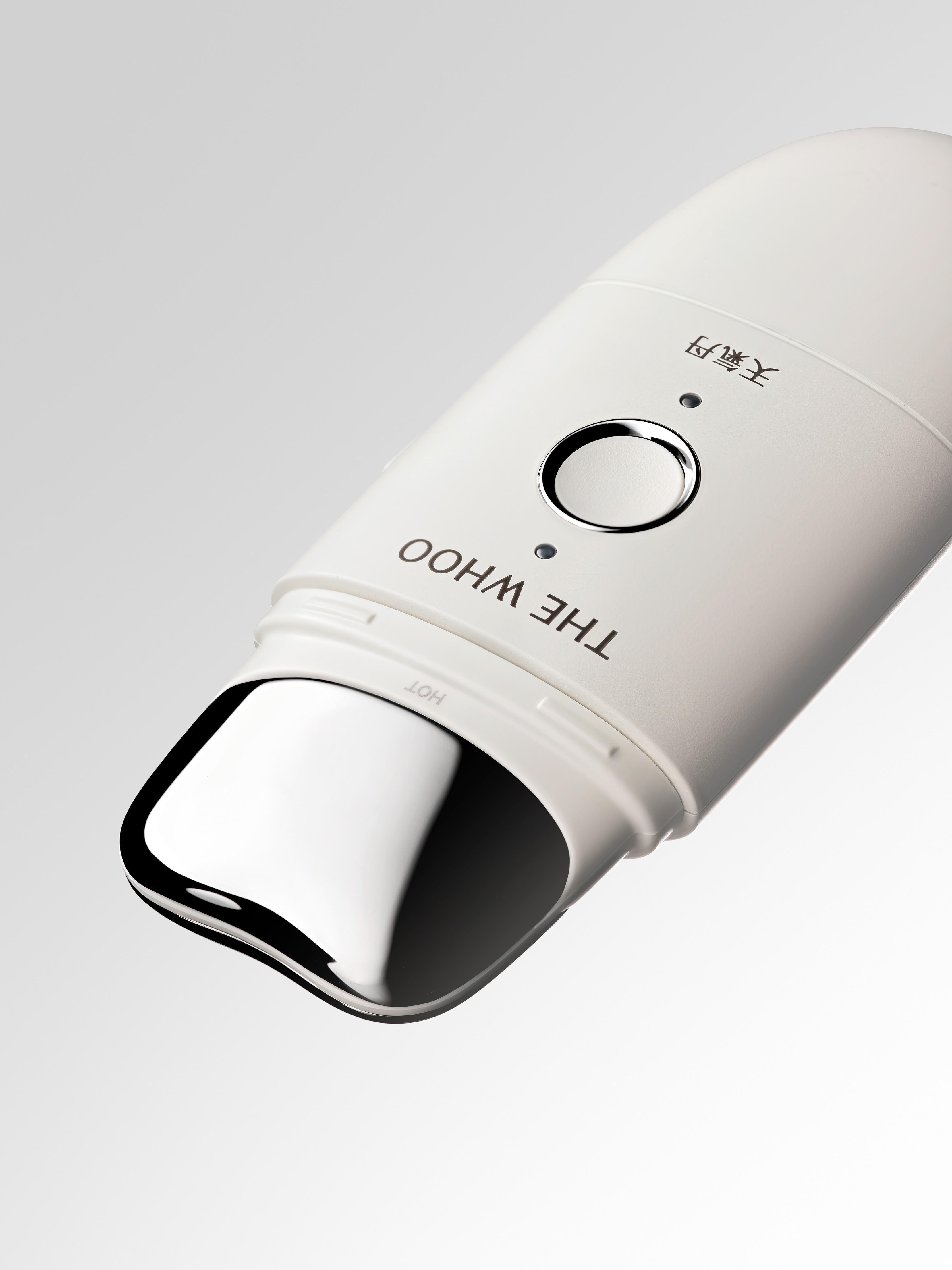 THE WHOO 更首度推出光耀煥活緊緻肌膚美容儀,結合溫熱、微電流及舒緩鎮靜模式,輕鬆改善肌膚光澤、膚質及皺紋問題。通過金屬導頭的溫熱與舒緩鎮靜功能,改善血液循環並緩解浮腫,同時利用微電流技術活躍肌膚細胞活動,促進膠原蛋白生成,有助改善肌膚彈性與皺紋,改善浮腫,提亮肌膚光澤,同時緊緻毛孔。與天氣丹光耀煥活緊緻眼霜搭配使用,更能重點改善眼袋及眼周皺紋。