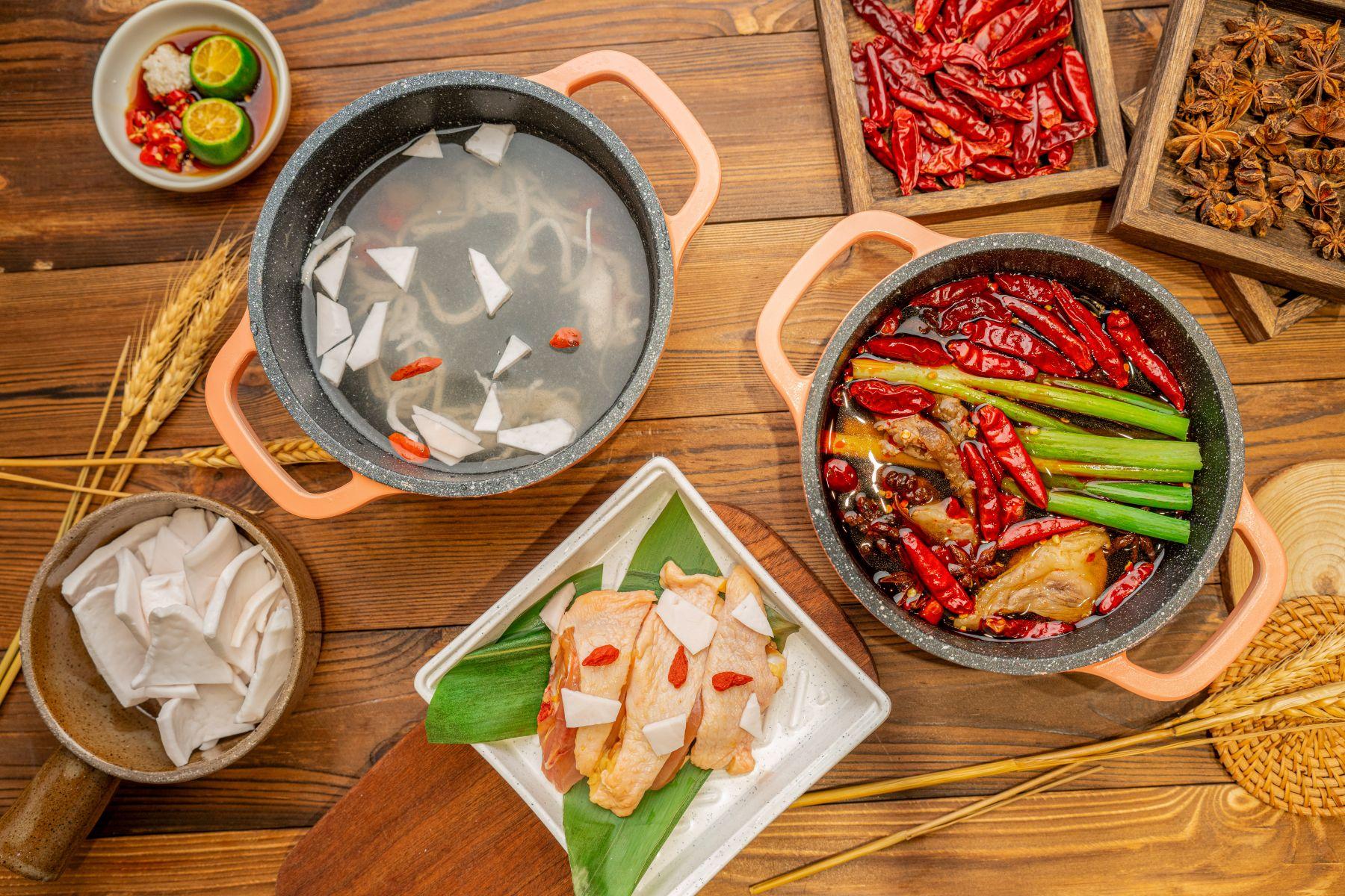 火鍋湯底可選藥膳椰子雞湯鍋或一鼎紅燒牛湯鍋。 飲品吧供應黑白神泡啤酒、芒芝芒芝、香水爆檸、黑糖珍珠牛乳。