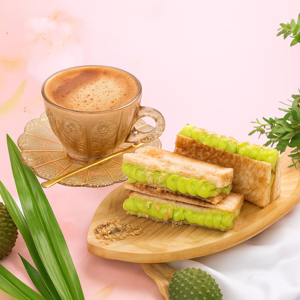 餐廳另外特別推出$28起超值下午茶優惠,下午茶時段不設茶芥及小食費。下午茶最抵首選班蘭咖椰多士配手標正宗泰式奶茶($28),多士用馬來西亞進口方包,經過烘烤後,入口份外酥脆鬆化,夾層中鋪滿特製的班蘭咖椰醬與鮮牛油,香甜咖椰醬以班蘭葉與椰奶打成細滑的忌廉狀態,略帶冰涼,配熱騰騰的多士,形成一冷一熱的絕妙對比。搭配地道泰國品牌的奶茶,茶香濃郁,奶味醇厚,是午後放鬆、補充能量的最佳選擇。