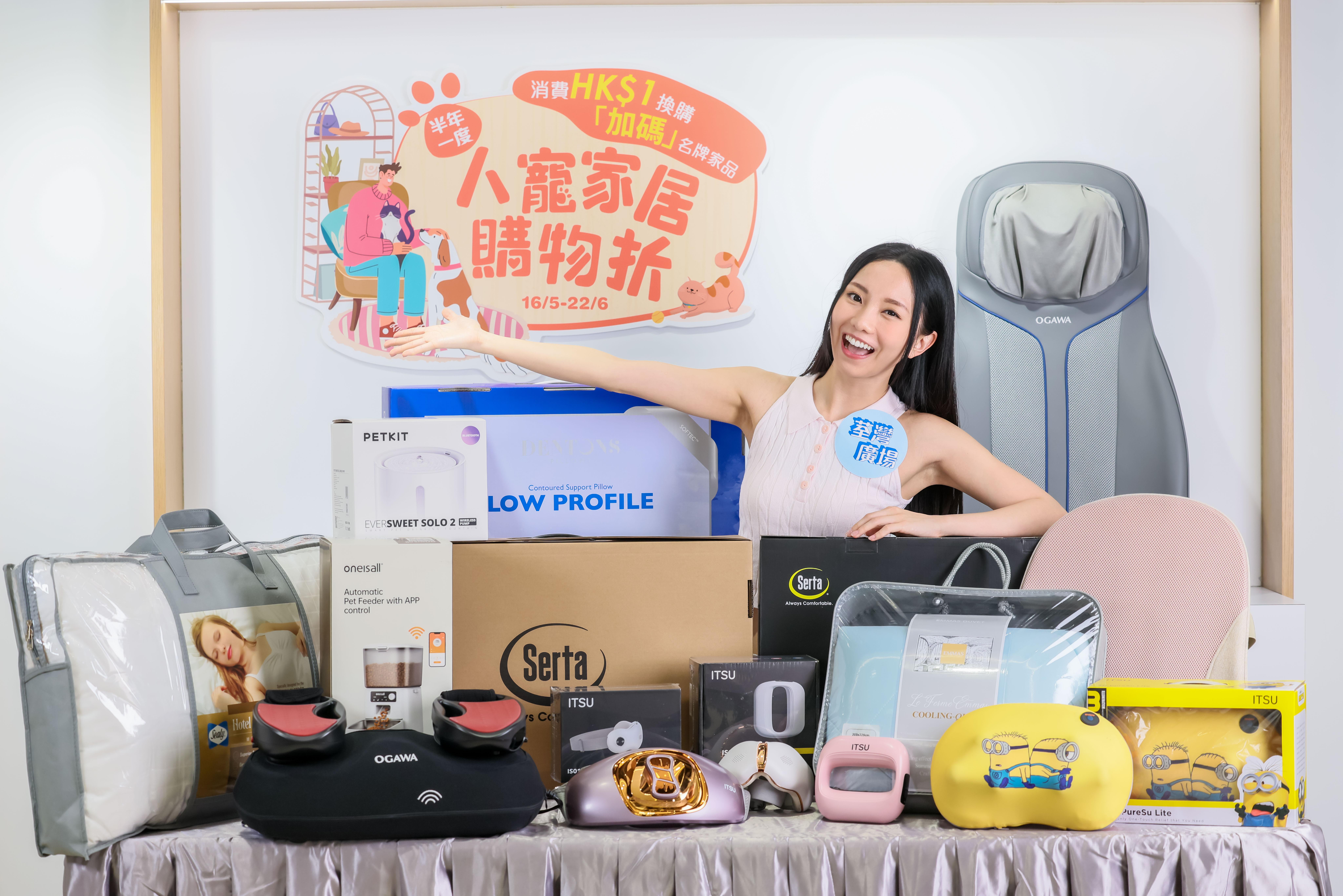 荃灣廣場再次舉辦「人寵家居購物折」,為各位奴才帶來超多優惠商品,當中涵蓋家居用品、寵物用品及電器等,滿足不同顧客需要。今年只要於場內指定商戶最低消費滿$2500,即可獲贈合共HK$200一田禮券及餐飲購物贈券組合。顧客甚至有機會以$1至入手價值高達$2500的名牌家品,包括OGAWA叻叻鬆(至尊版)一體式按摩座墊及OGAWA舒體美形律動儀等。