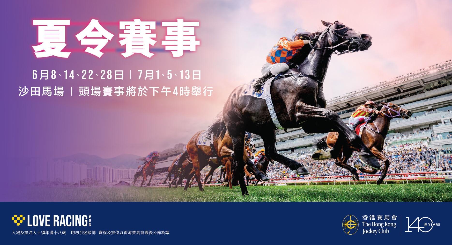 由6月8日至7月13日期間,沙田馬場賽事特別調整至下午4點後開始,讓訪客在清涼環境下享受精彩賽事。馬會特別加推3大潮玩體驗,當中包括多位新生代歌手如人氣樂隊 ROVER、Pandora及何洛瑤(sica)現身表演。夏令賽事期間,馬會送出合共150萬獎品,矚目獎品包括一両足金金馬!