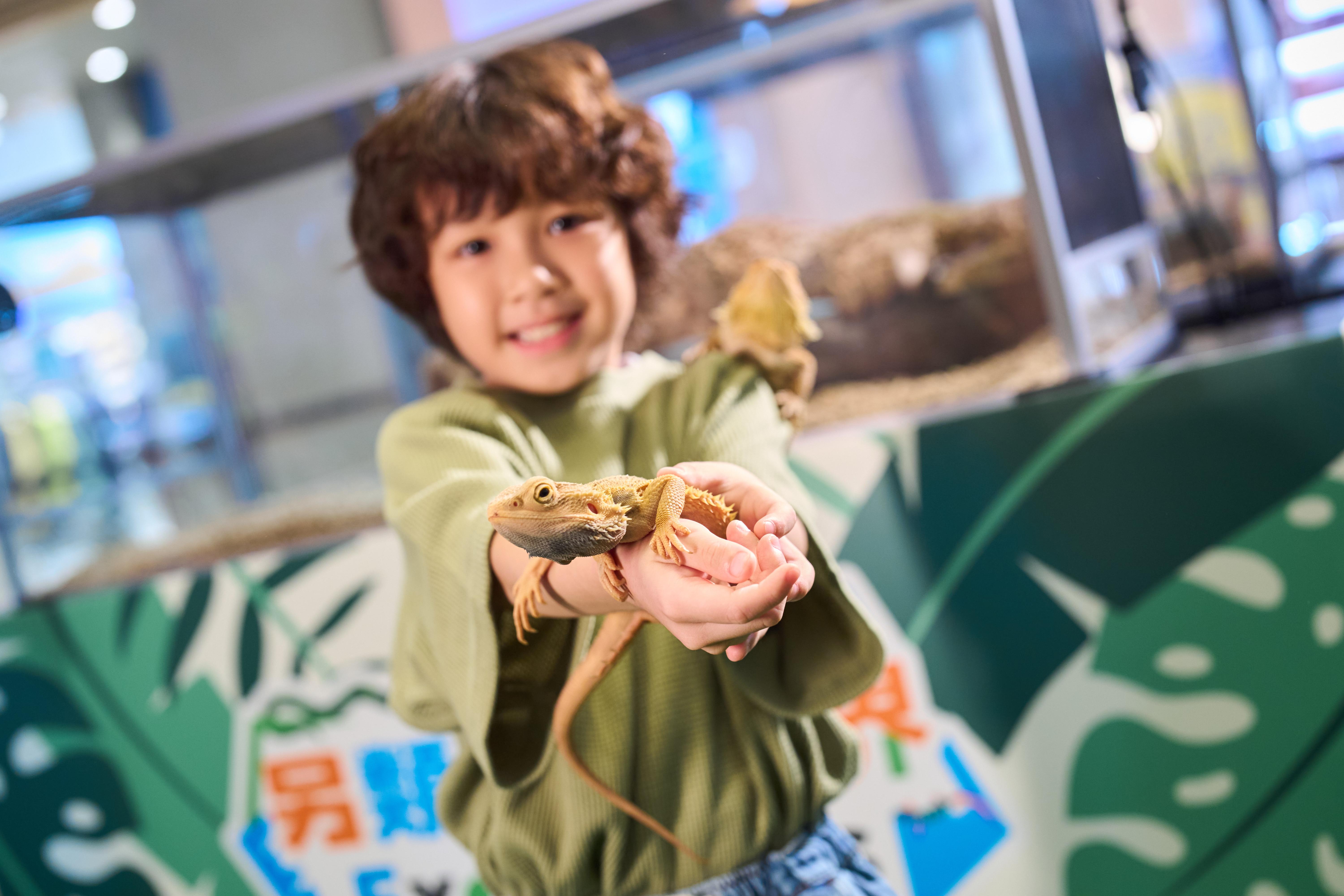旁邊的「互動異寵樂園」則會展出南美洲泰加蜥蝪、世界第三大陸龜蘇卡達象龜、大型陸生龜種阿達伯拉象龜等。小朋友可於飼育員的帶領下,與牠們互動合照,甚至能嘗試餵飼象龜,拉近雙方距離。飼育員同時講解不同動物的特徵及生活習慣,加深對異寵的認識。教育展設「小小動物學家體驗課」及「小小動物學家暑期課程」,最適合對異寵充滿好奇的小動物學家。完成課程後,各位動物學家更可獲發證書,肯定孩子的努力。