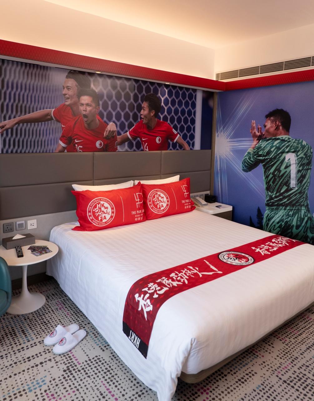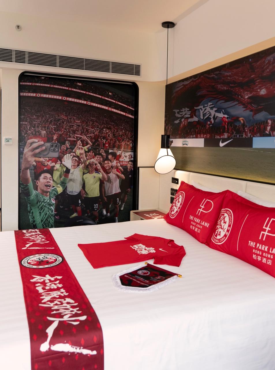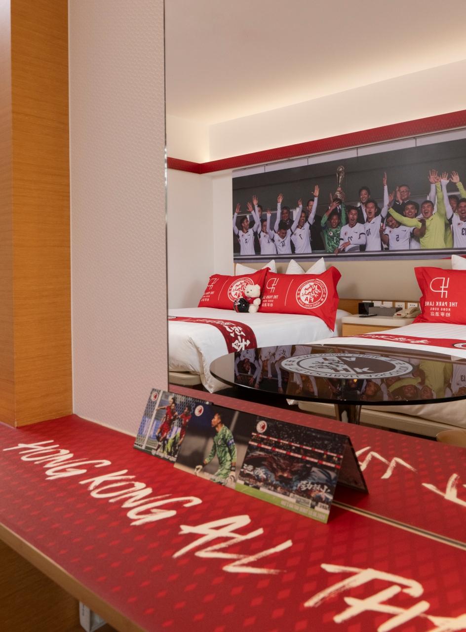 酒店特別打造三間主題客房,每間均配備維多利亞公園景或半海景,並配備不同打卡位及港隊紀念禮品: