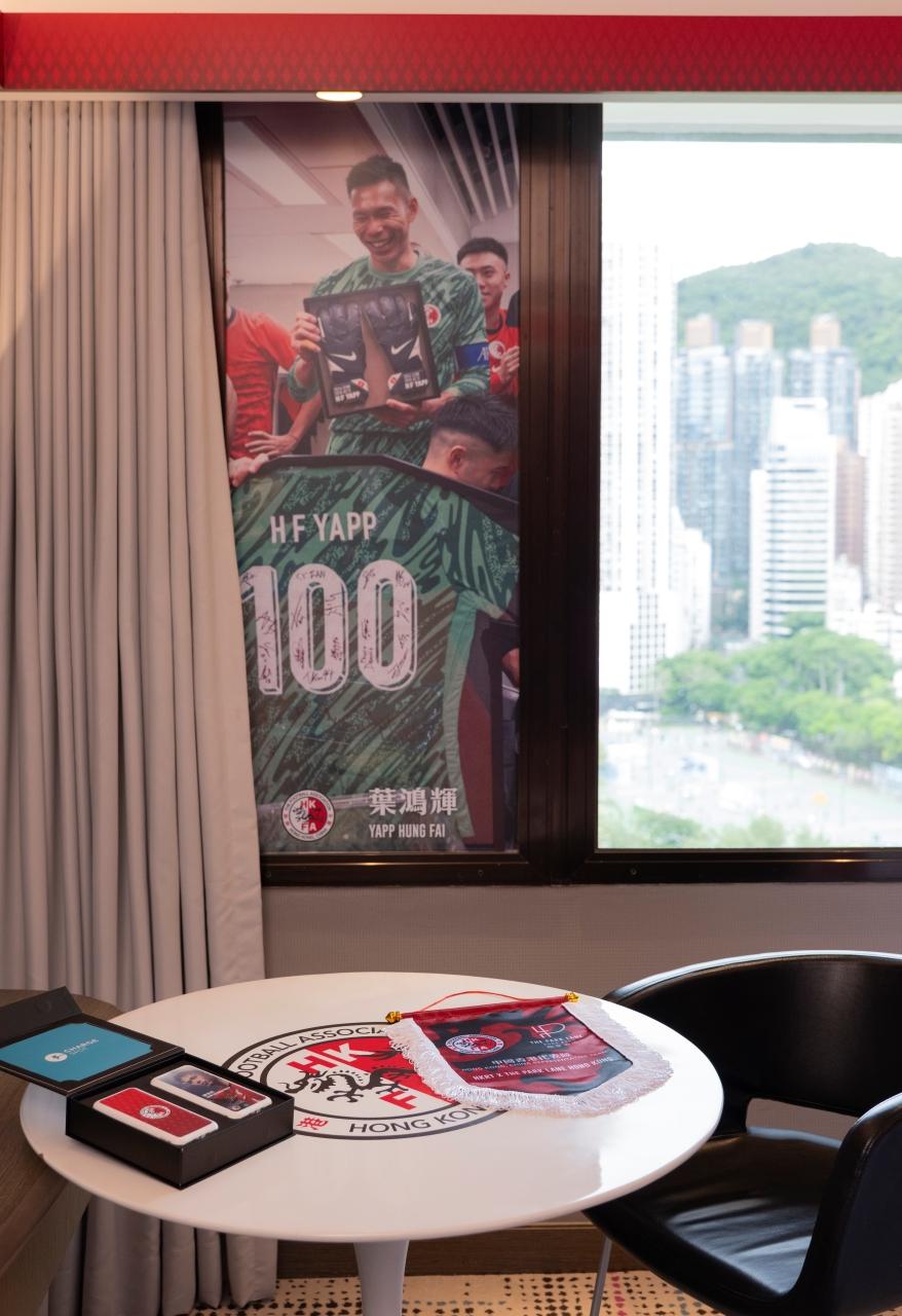 即日起至8月31日,酒店大堂的The Art Lab將展出港隊重要里程碑的相片,包括隊長葉鴻輝破紀錄上陣100場的珍貴畫面,以及港隊在啟德體育園首戰的精彩瞬間。葉鴻輝的守門員手套及球鞋等亦將會展出。展覽還特設球迷打卡區,讓大家近距離感受「港隊勁揪」精神!