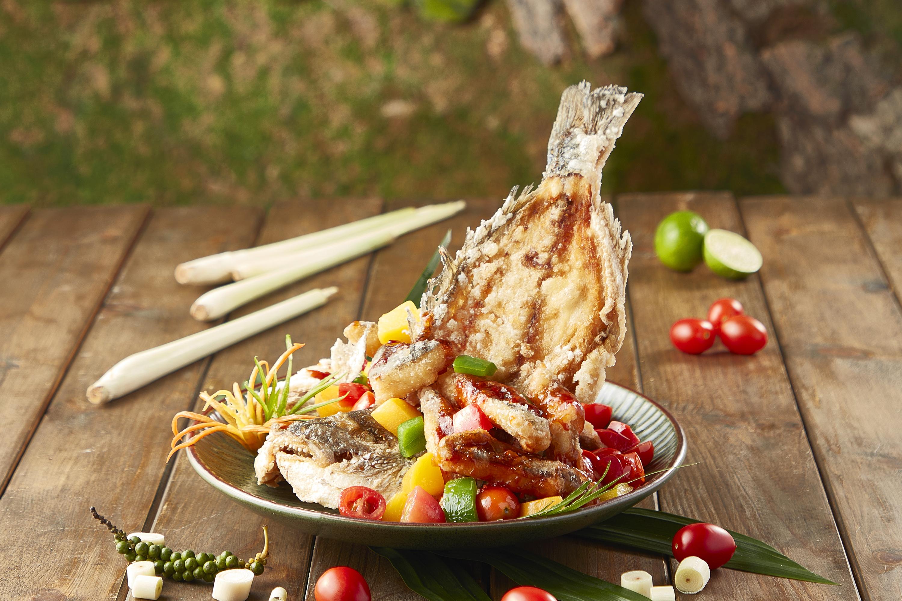 公園同步推出多款當季佳餚及周邊商品。矚目美食爐炭燒的「泰式鮮蝦芒果柚子沙律」和「泰式甜酸東龍鯛伴蜜桃」,十分適合炎炎夏日品嘗。精品方面,熊貓粉絲不妨入手穿上幼稚園校服造型的「加加」和「得得」熊貓公仔,可愛校服造型融化不少人的心。
