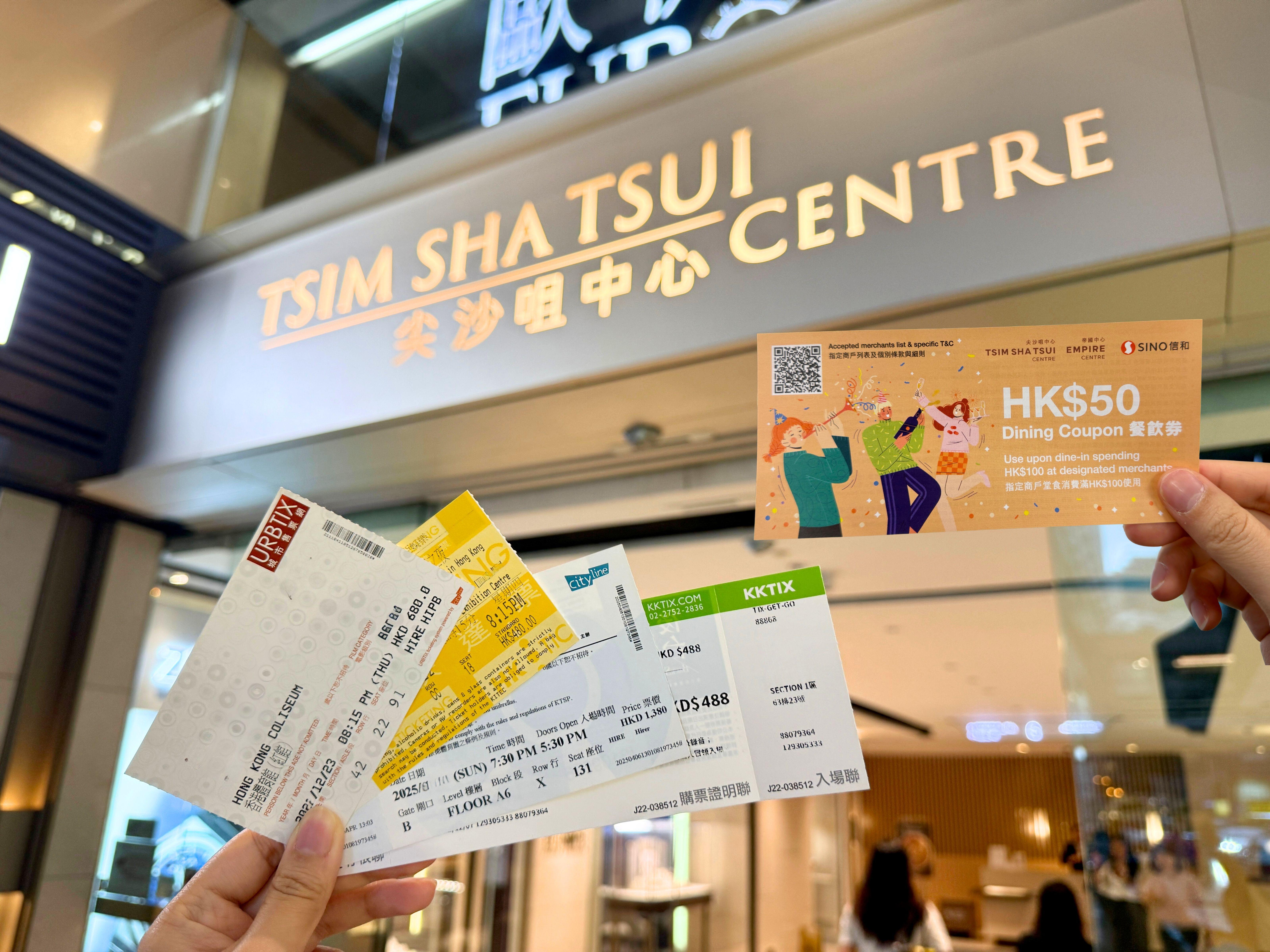 想在看完精彩表演後,來一頓美味大餐?即日起至930日,尖沙咀中心及帝國中心推出「夏日活動盛事賞」,只要持有當月在指定場地舉辦的活動門票(實體或電子皆可),就能在尖沙咀中心地下禮賓處兌換HK$50餐飲券一張。餐飲券可在指定餐飲商戶消費滿HK$100時使用。