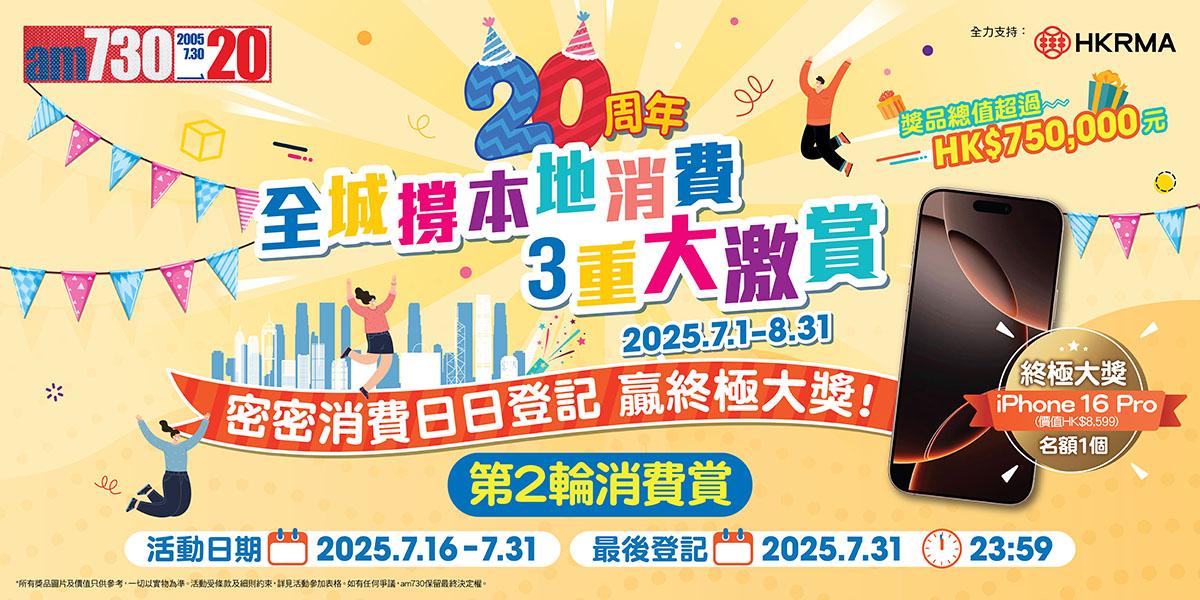 - am730 20周年「全城撐本地消費3重大激賞」!密密消費日日登記 贏終極大獎!