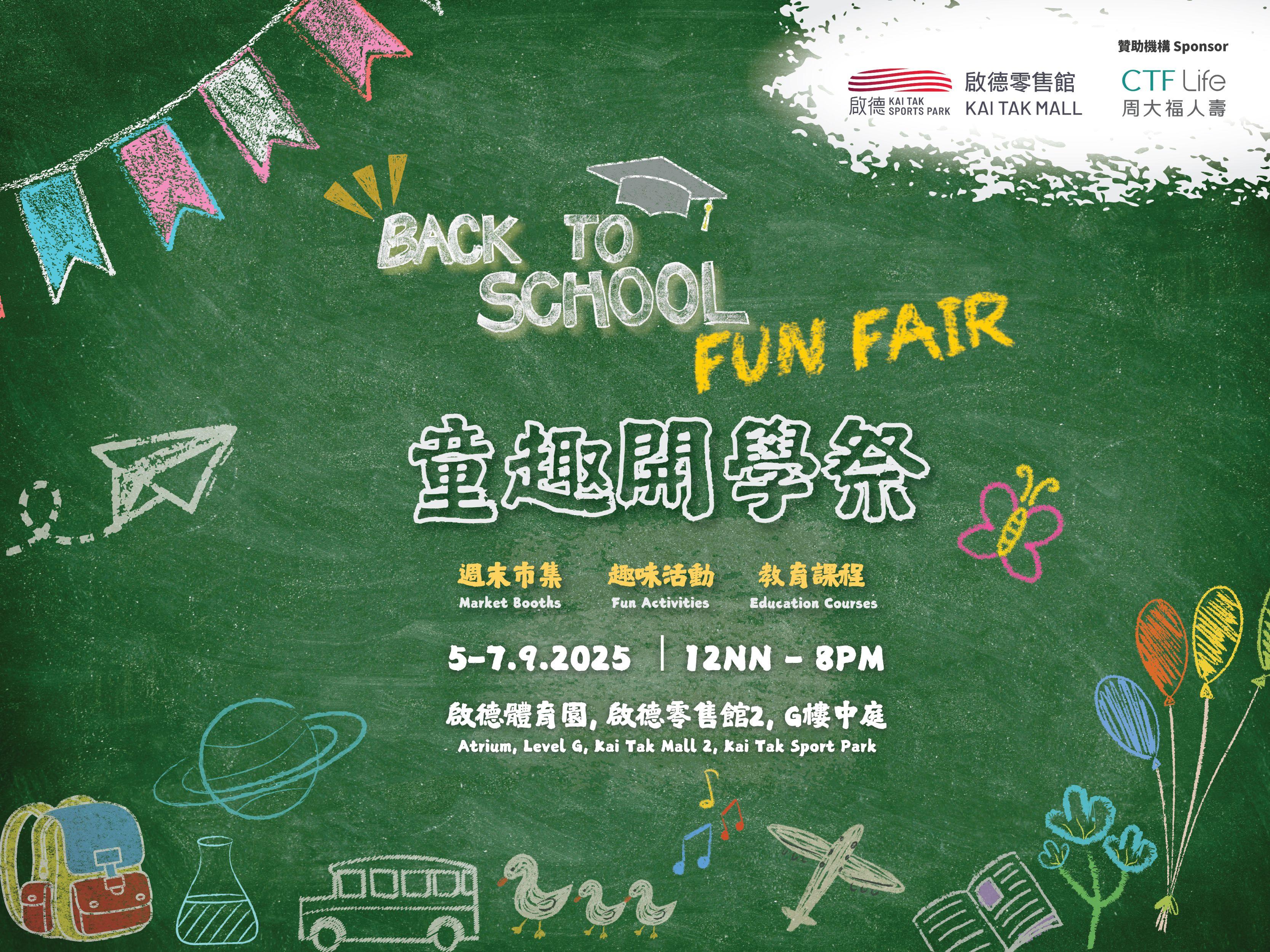 新學年,新開始。家長不妨為小朋友報讀課外活動或選購各種上學用品,迎接新學年。啟德零售館首設童趣開學祭,雲集20個不同親子品牌,涵蓋教育攤位、文具零食及工作坊。