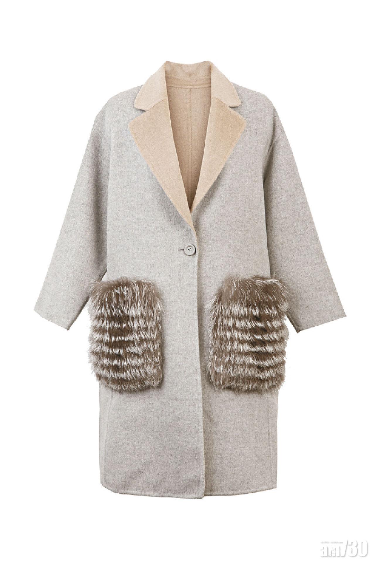 啡白條子top $3,595; 啡色military coat $7,995; 白啡色patchwork shirt $2,995; 啡色呢絨闊腳褲 $3,495