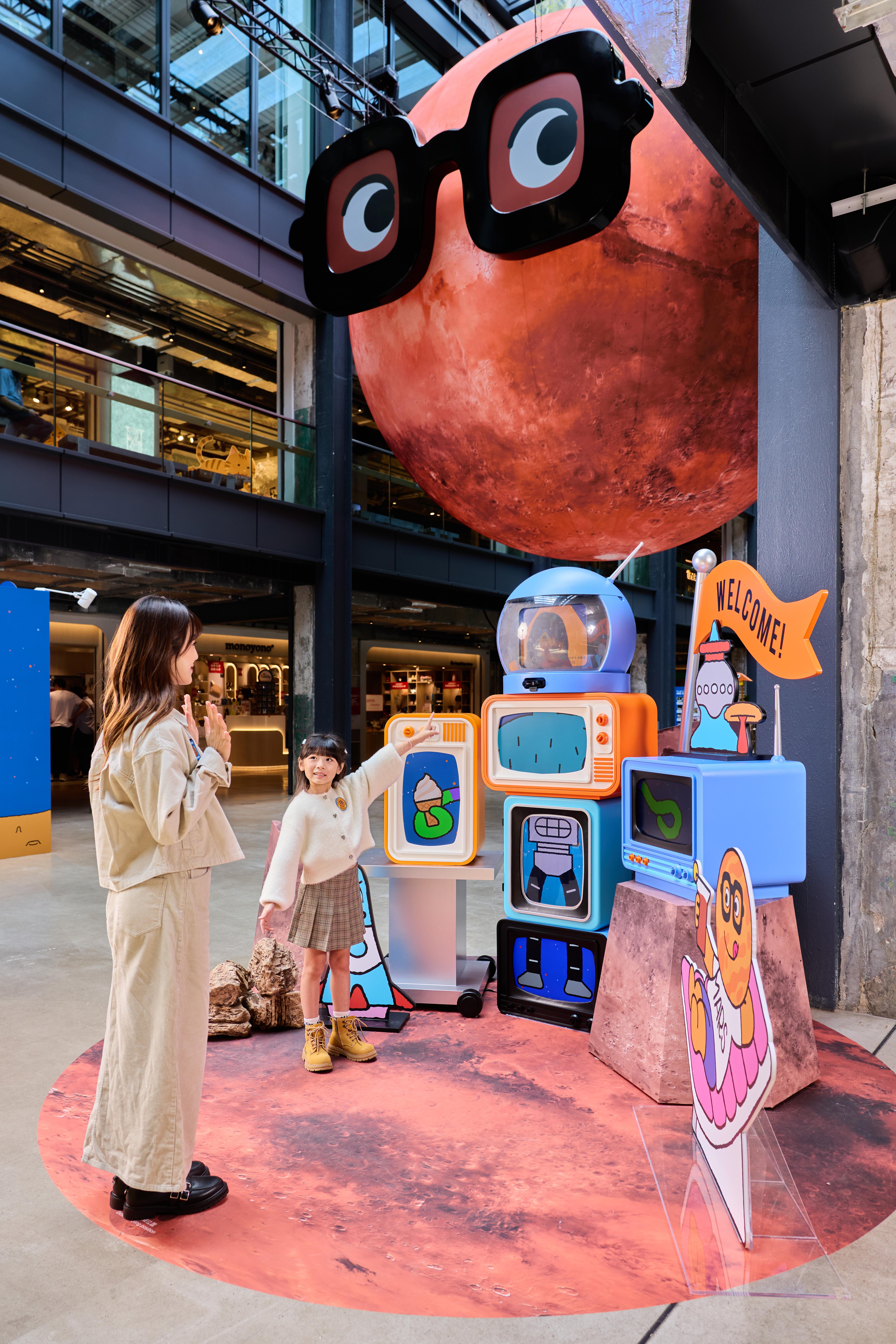 南豐紗廠6米高火星裝置Mr.MARS,是按照美國NASA的航拍照片和數據製作。裝置呈現火星赤紅表面以及星體上的高山低谷,讓人彷彿置身火星,太空迷必定要拍照打卡。Mr.MARS同時會戴上超過60寸的LED雙屏眼鏡,連環播放火星旅遊宣傳短片及於火星生活的想像動畫,啟發訪客對移居火星的聯想。