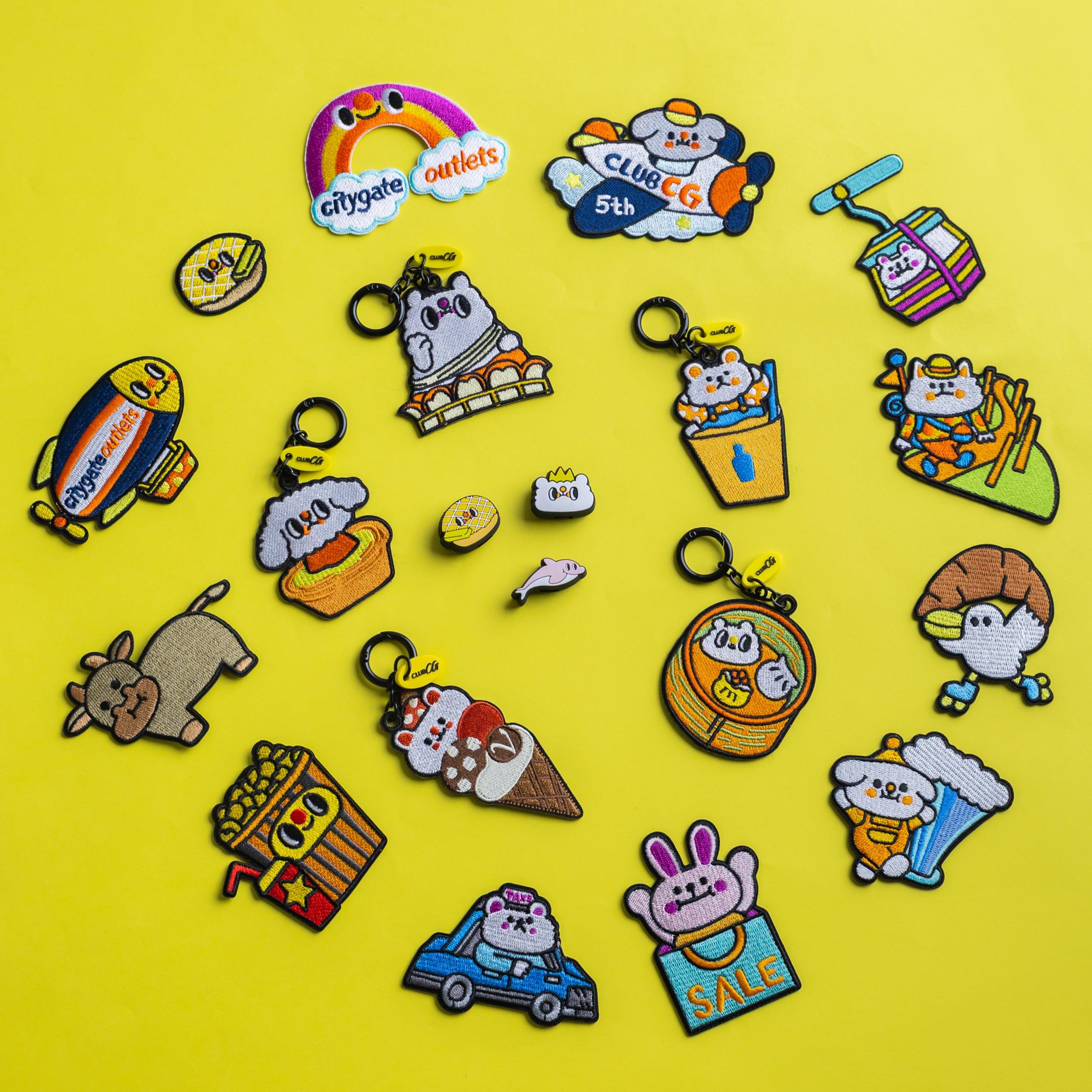 東薈城名店倉特別聯乘本地壁畫師兼插畫家 Messy Desk,為 CLUB CG 五周年設計了20 款限定刺繡布章及鎖匙扣
