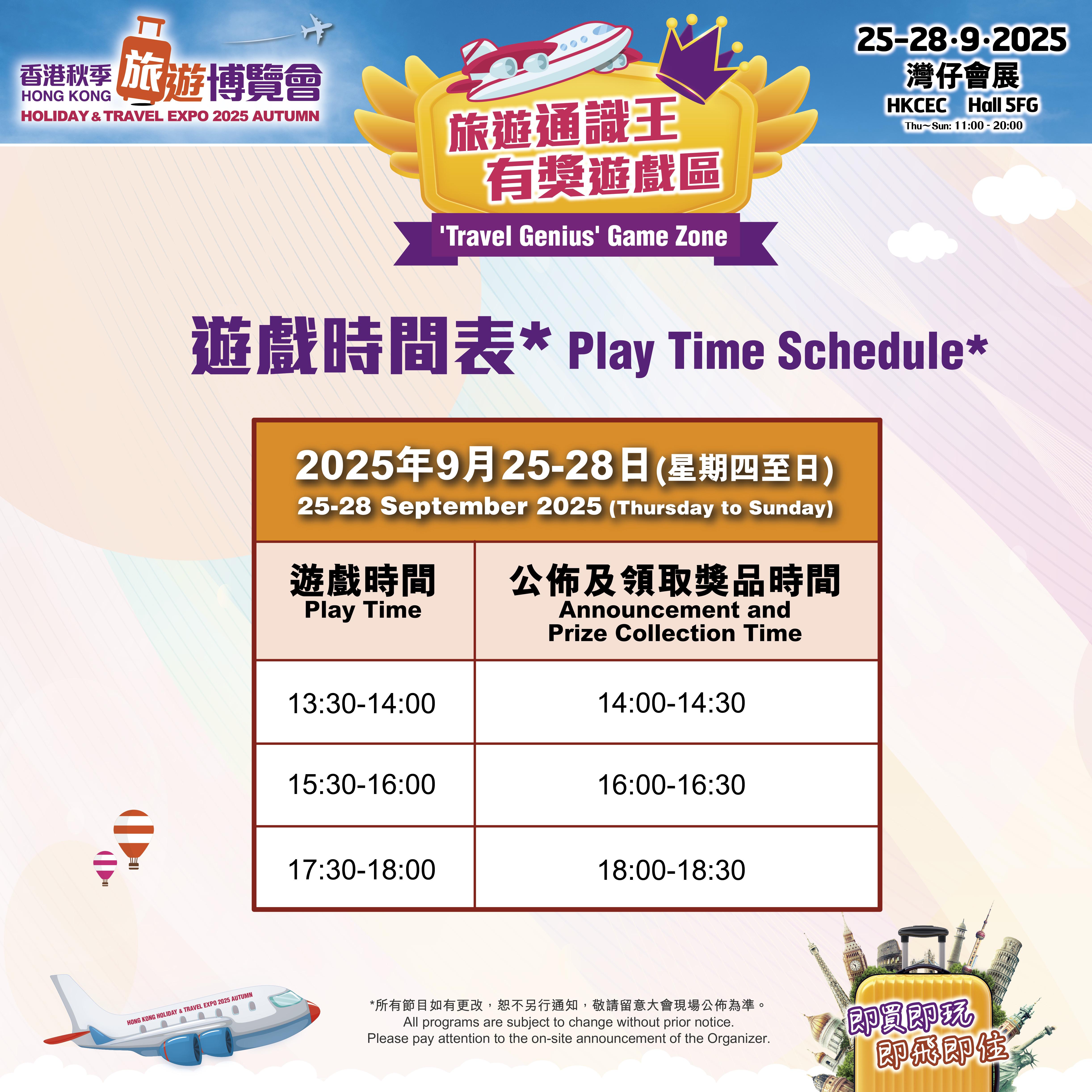 每日名額:925-27 1位;928 2位,受條款及細則約束。