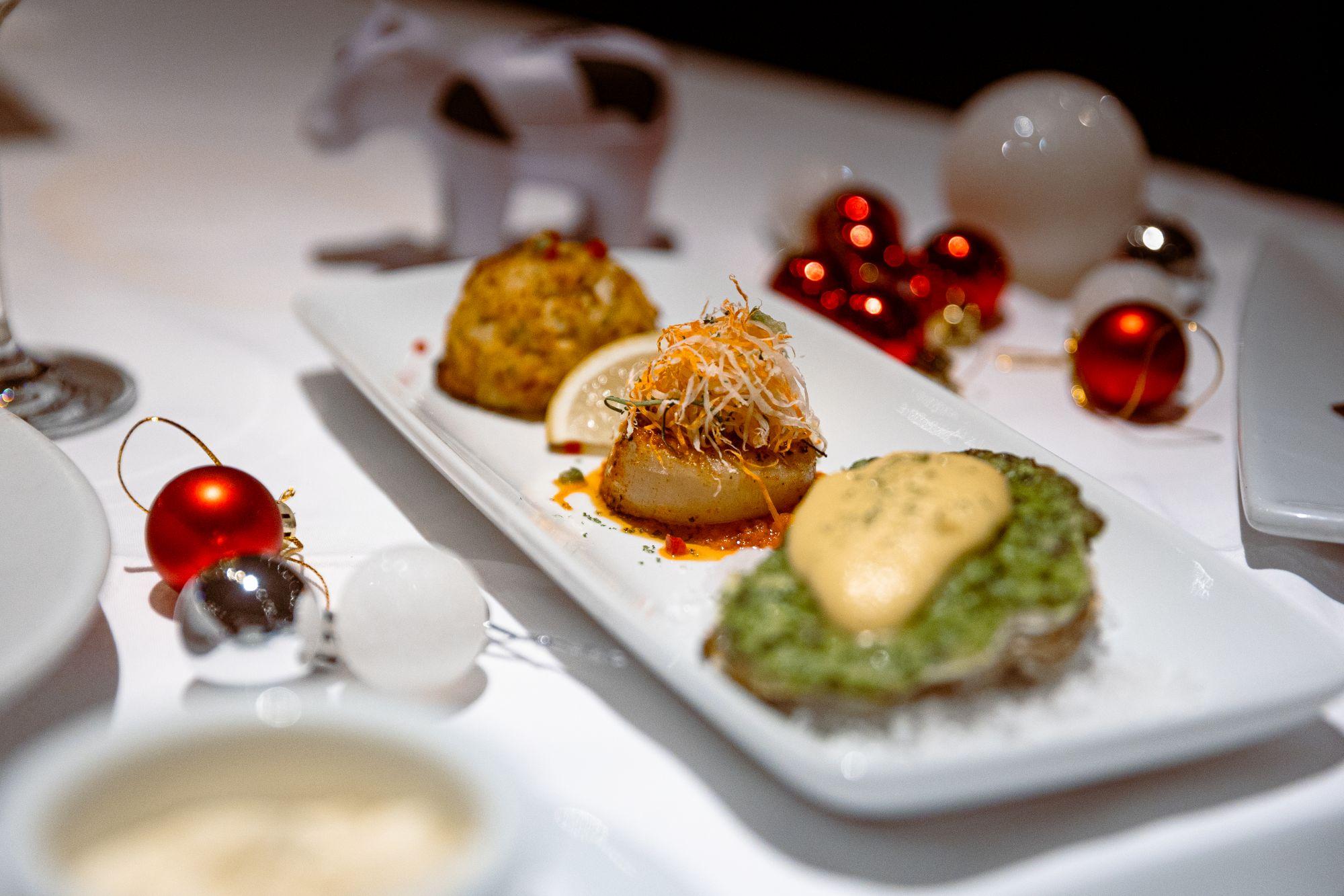 由現在起至11月30日期間推出60周年限定菜單。 前菜「海鮮三重奏」包括新奧爾良蟹肉糕、香煎乾貝和洛克菲焗烤鮮蠔。