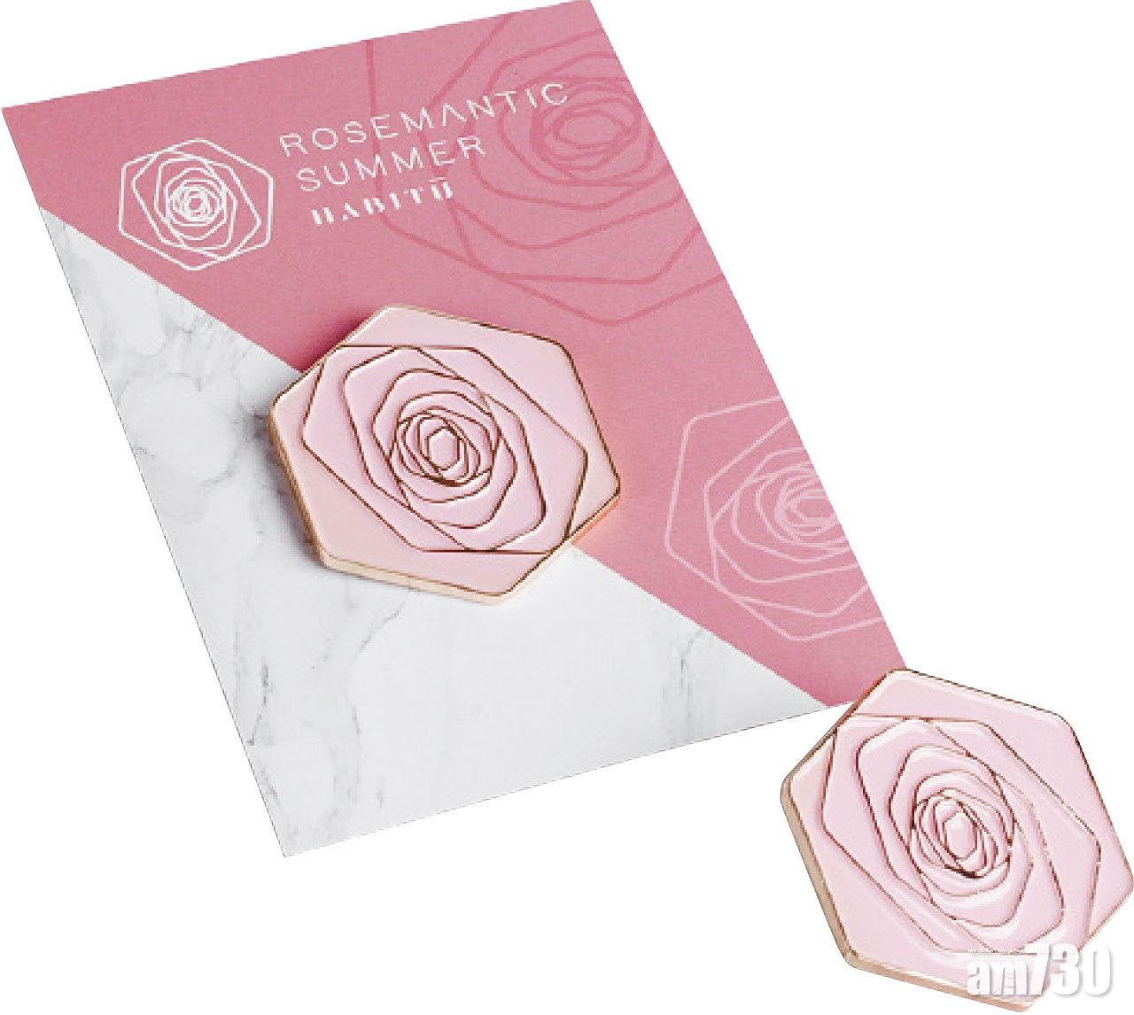 Rosemantic「珍藏必備」限量主題精美飾物,今年以簡約幾何線條表達玫瑰花朵,包括玫瑰襟針、皮革卡片套、夏日兩用網袋及花草系紋身貼紙。