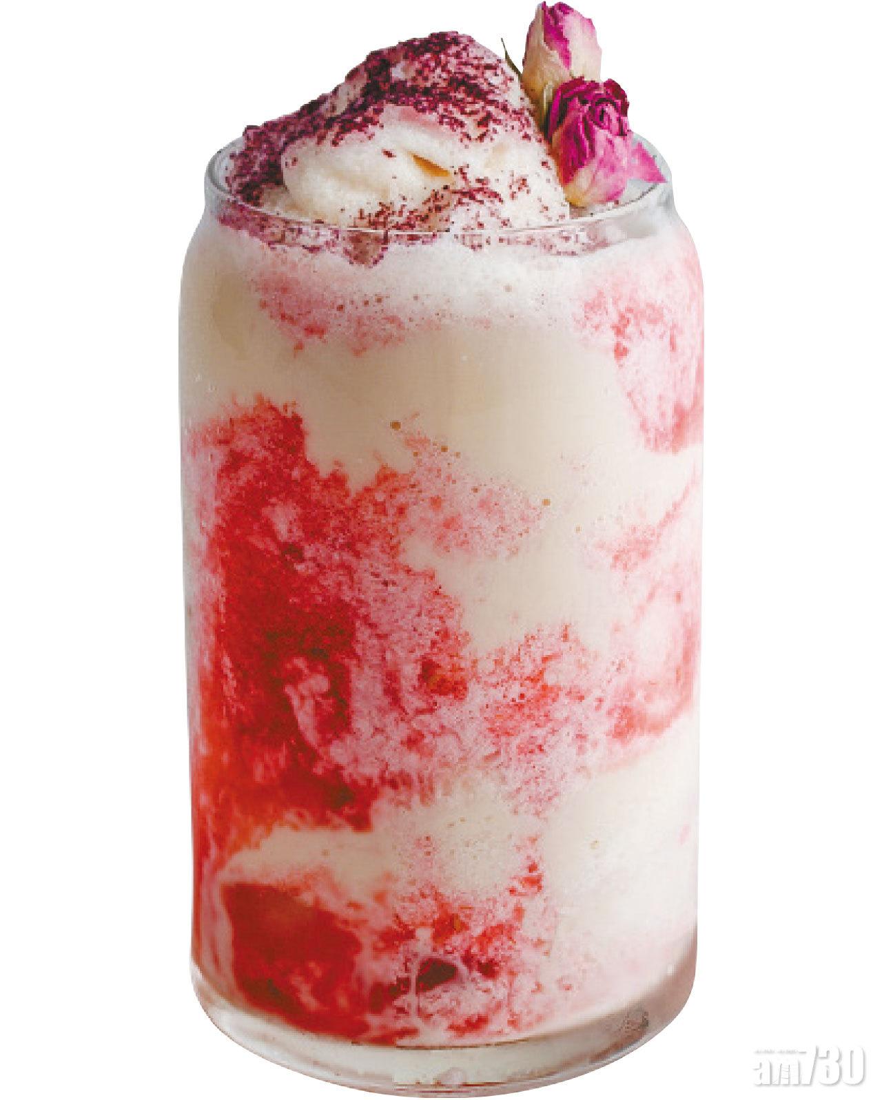 巴西莓玫瑰豆奶碎冰,以新鮮紅桑莓蓉混入巴西莓,加入豆奶及碎冰,最後加上玫瑰花瓣及有機羅勒籽,酸酸甜甜夠解暑,豆奶更可按要求轉成鮮牛奶。$58