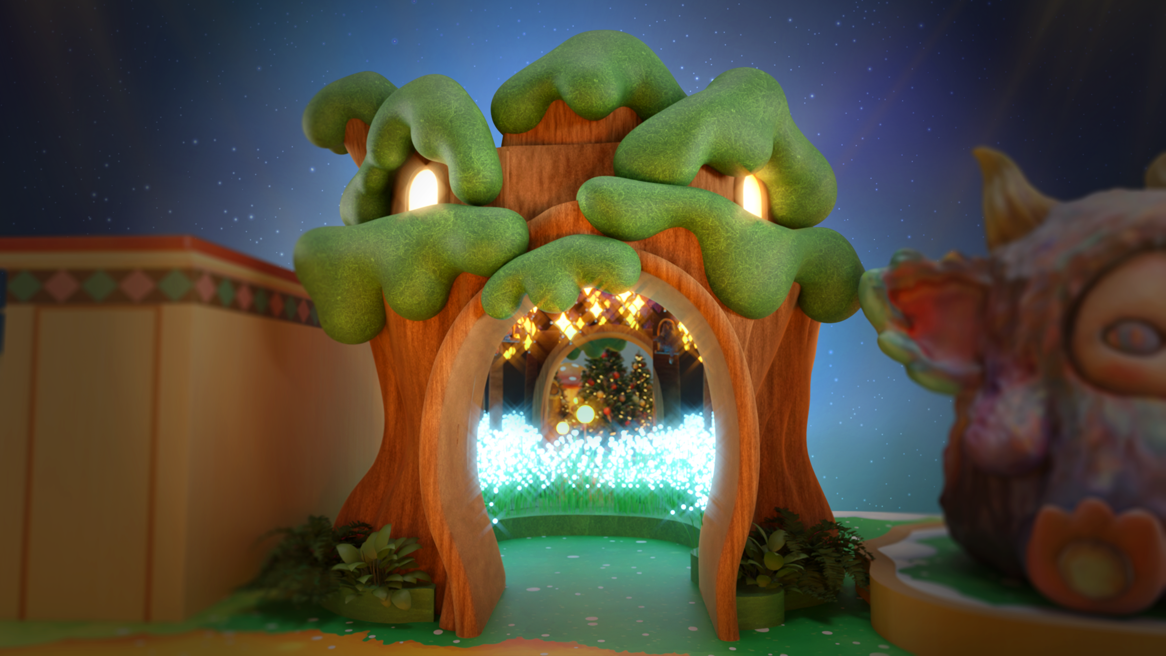 以約12米長的燈光隧道構成,色彩流動、光影交錯,配合音樂節奏,呈現簡潔明亮的聖誕景象。
