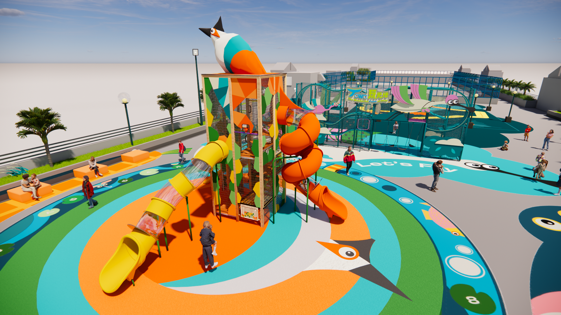 Town玩天地將於12月4日開幕。作為濕地主題公園,設計團隊One Bite特別選用繽紛色調設計。高達5米的「BillBill歷險塔」及「BulBul樹屋」絕對能夠瞬間吸引全場小孩目光。「BillBill歷險塔」塔頂設有「濕地之星」黑臉琵鷺BillBill,小朋友須爬上垂直攀爬架,才可與BillBill見面,考驗他們的手腳協調及勇敢程度。