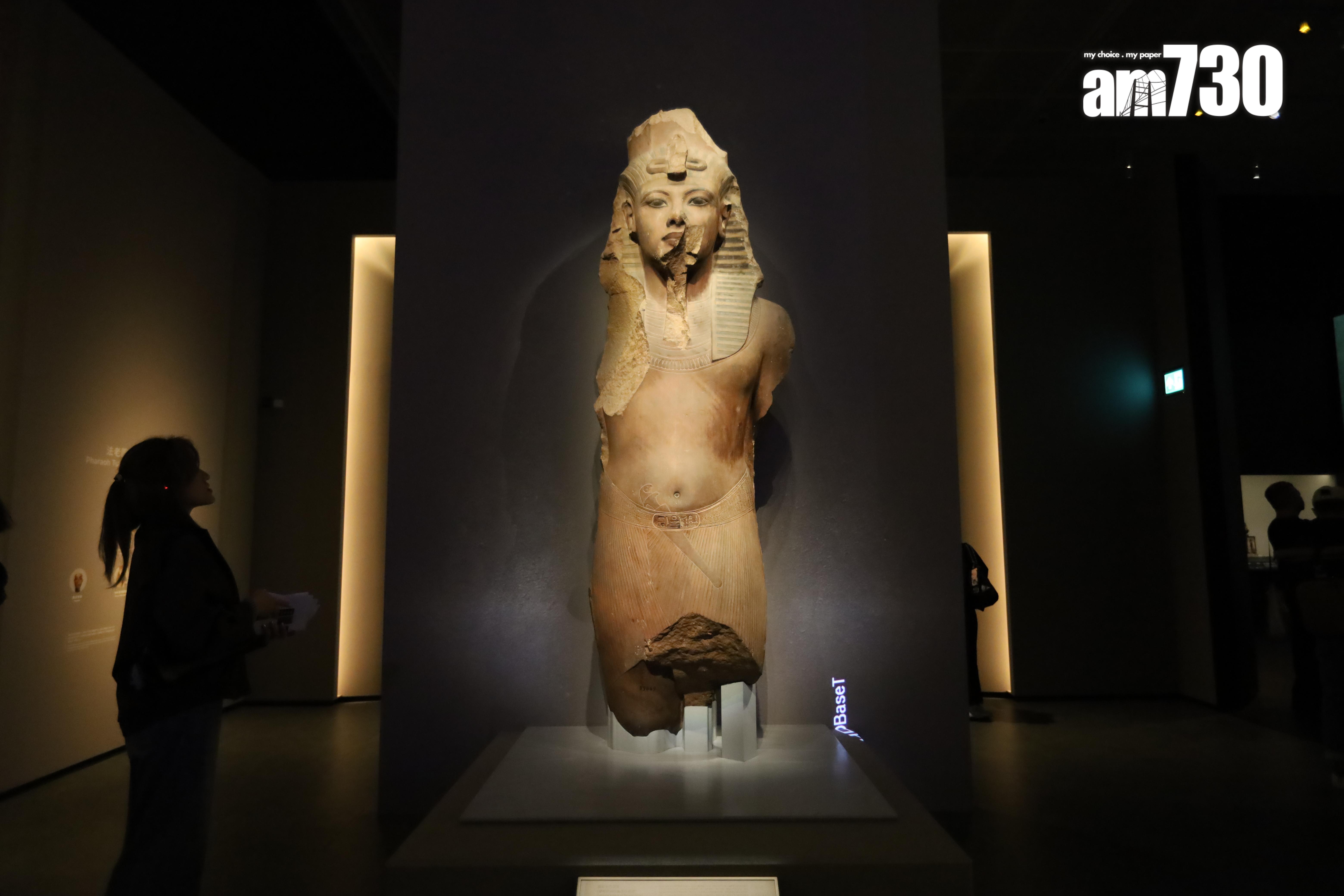 圖坦卡門是世界上最著名的法老。圖坦卡門在18歲離世後,便被後人從法老表中刪除名字,故此在過去的盜墓潮中避過一劫,成為少數保存完好的陵墓。因此出土大量完整文物及珍寶,大大推動了後世對古埃及的考古工作。圖坦卡門巨像原高5米,展內更以投射技術還原巨像殘缺部分,非常震撼。