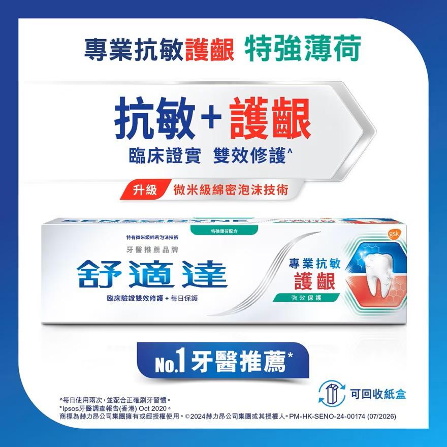 是次優惠期一連7日由即日起至12月4日,只限網店購買,並不包括實體門市。只要購買指定包括:舒適達全方位防護+、專業修復抗敏、專業抗敏護齦、速效抗敏以及專業抗敏修護琺瑯質系列牙膏。即可獲贈肩頸加熱按摩器、詩樂氏廚房清潔液500ml、詩樂氏强效除霉泡沐噴劑400ml以及道地極品烏龍茶250毫升6包。