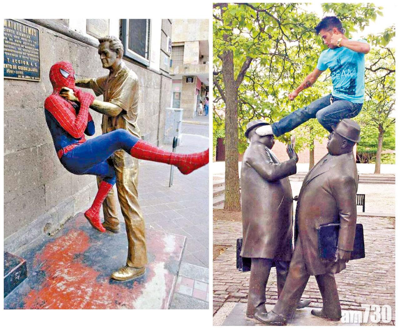 返回 生活 出版:2019-May-29 06:00 更新:2019-May-29 06:00 互動selfie玩轉雕像 分享: 街頭雕塑每成打卡勝地,若動點心思加點想像,為石塑銅雕的人像注入生命力,照片的可like度頓時飆升。新成立圖片網站Go.social搜集了一批妙趣「互動雕像」,盡顯惡搞者的幽默細胞,例如加拿大安大略省著名銅像,偶遇的商人乍看被踢得昏頭轉向;還有英雄落難蜘蛛俠、惜別戀人被偷行李,讓人會心微笑。 ADVERTISEMENT激送Monchhichi維港海陸嘉年華入場券!