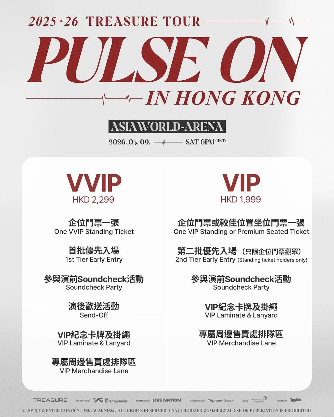 TREASURE香港演唱會 即睇票價/座位表/VIP福利