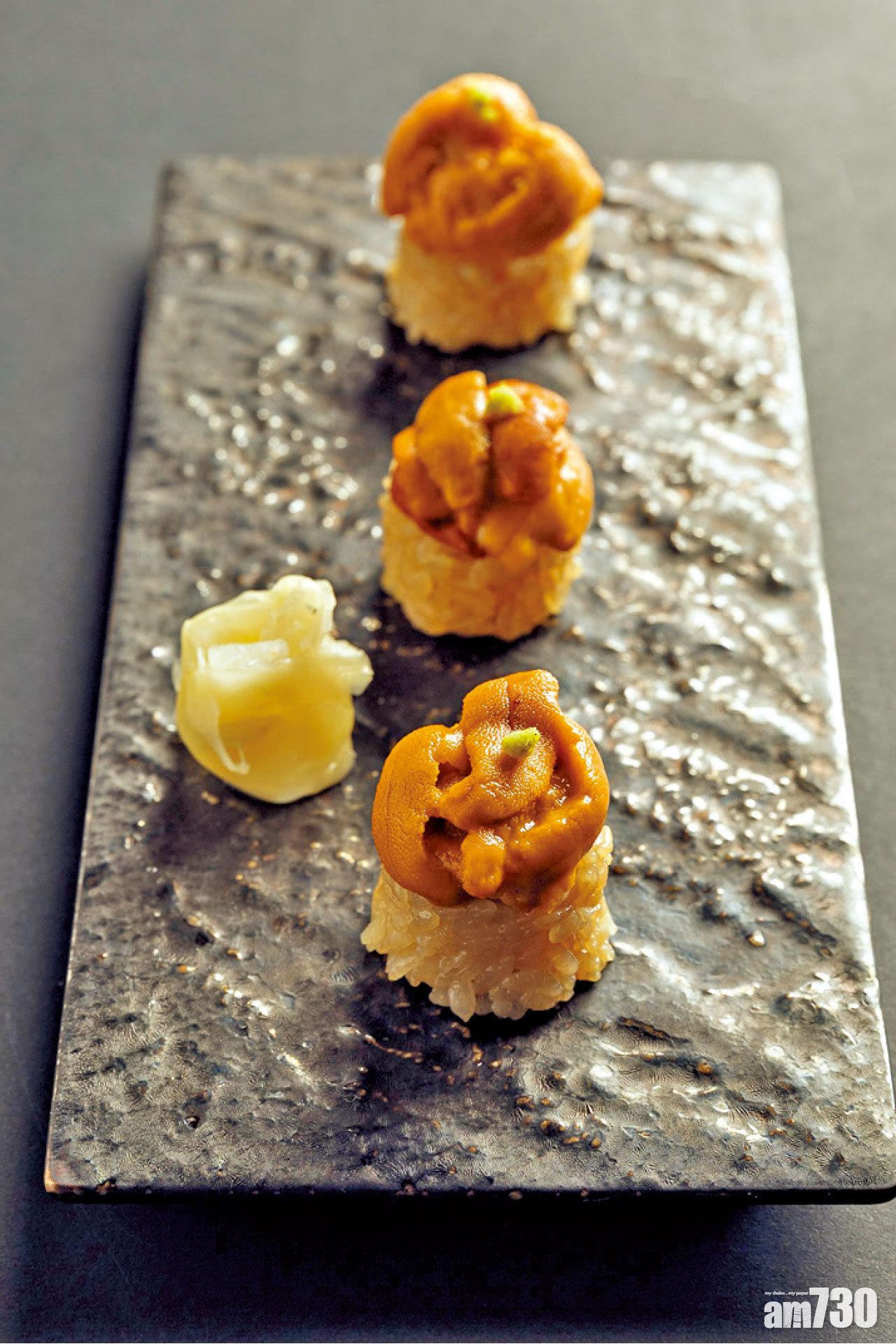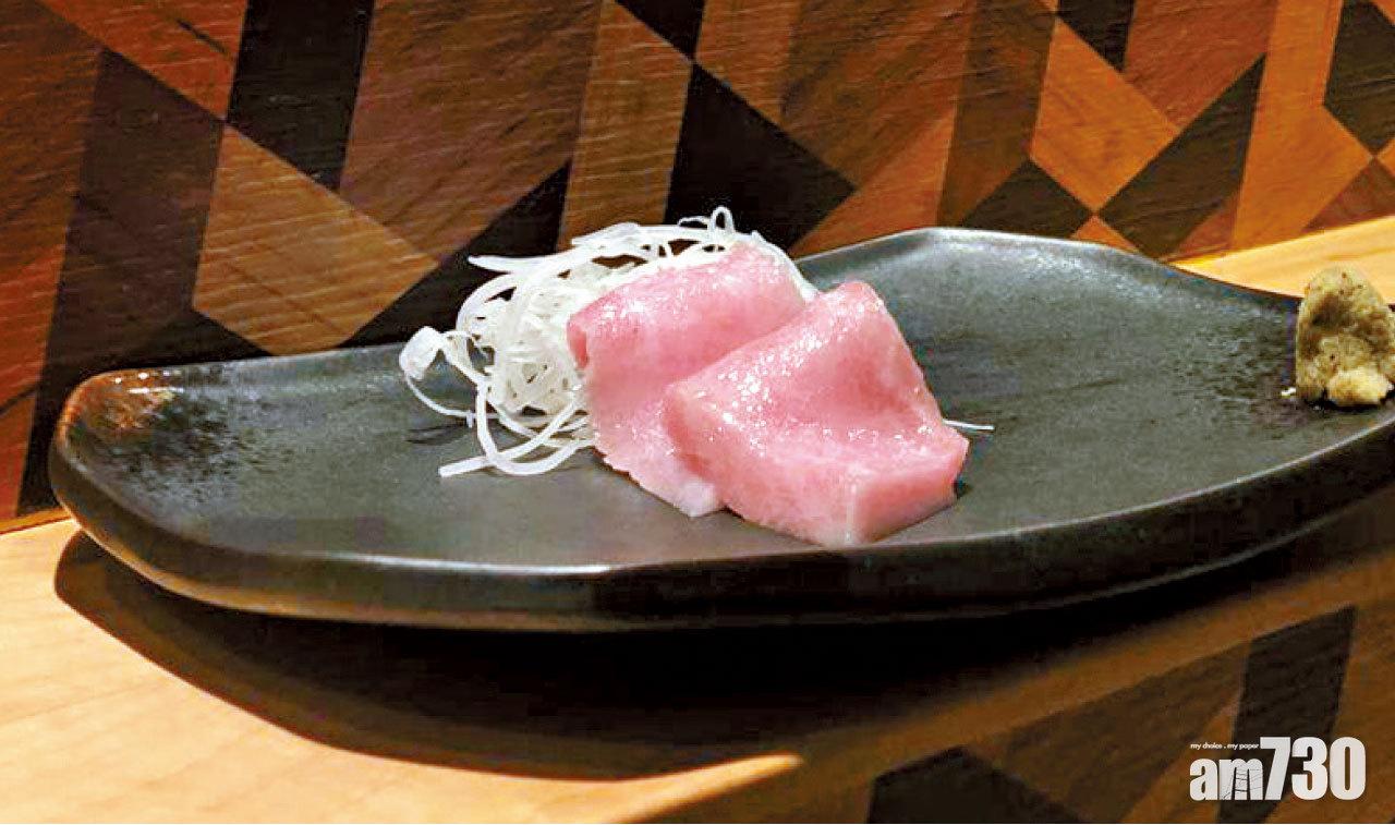 坐在壽司吧檯一邊看著劉晉維師傅的創作,一邊聽著講解,絕對是一種享受。一件拖羅,在維師傅手中,可以分割成7個不同部位,取成「七段拖羅」。每一段都有不同體驗,不論是魚的清甜、豐腴的油脂,又或入口即溶,在同一魚身便能品嘗到。每道前菜都令人驚喜萬分,爽脆的野生九州福崗岩蠔,每隻重350克,啖啖肉;爽甜的蝦夷貝,每片貝肉都切得透薄,才能吃出爽口不韌的口感。精彩前菜過後,便是師傅的拿手「七段拖羅」,是日兩段拖羅,先來一口魚的清甜,再來入口即溶,既沒有「渣」,亦沒有根,令人驚嘆。壽司部分前,先來時令蔬果清清味蕾,這天的冰菜來得正好。廚師發辦,不就是這樣的體驗嗎?
