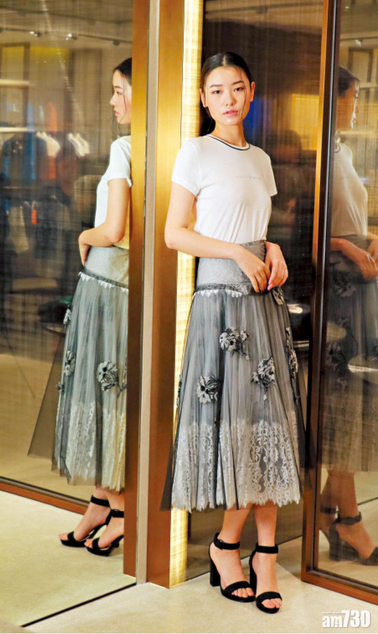 Ermanno Scervino白色印字T恤 $2,795; 拼色雙層花卉綴刺繡百摺紗裙 $37,995