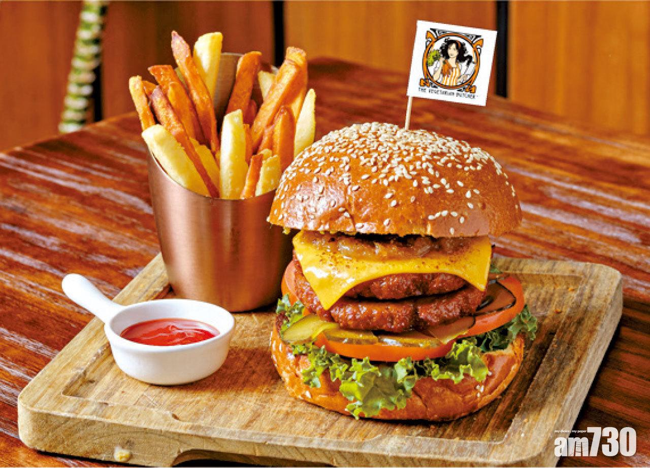 Appendix Coffee & Bar植系牛肉漢堡配烤洋蔥及雙色薯條。