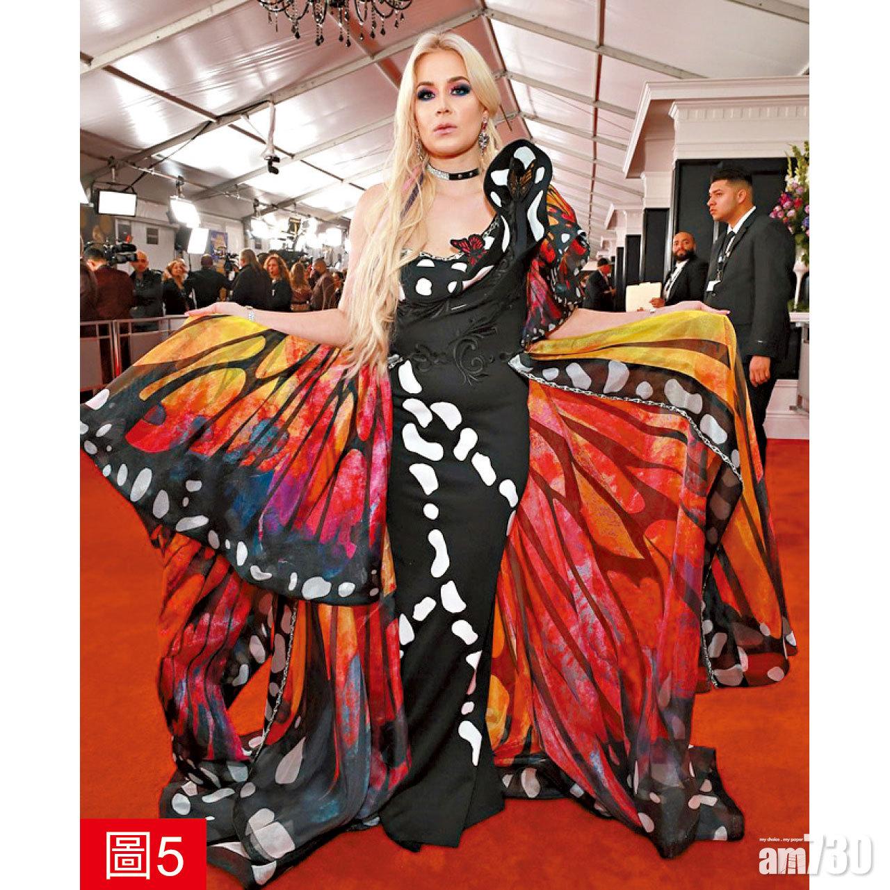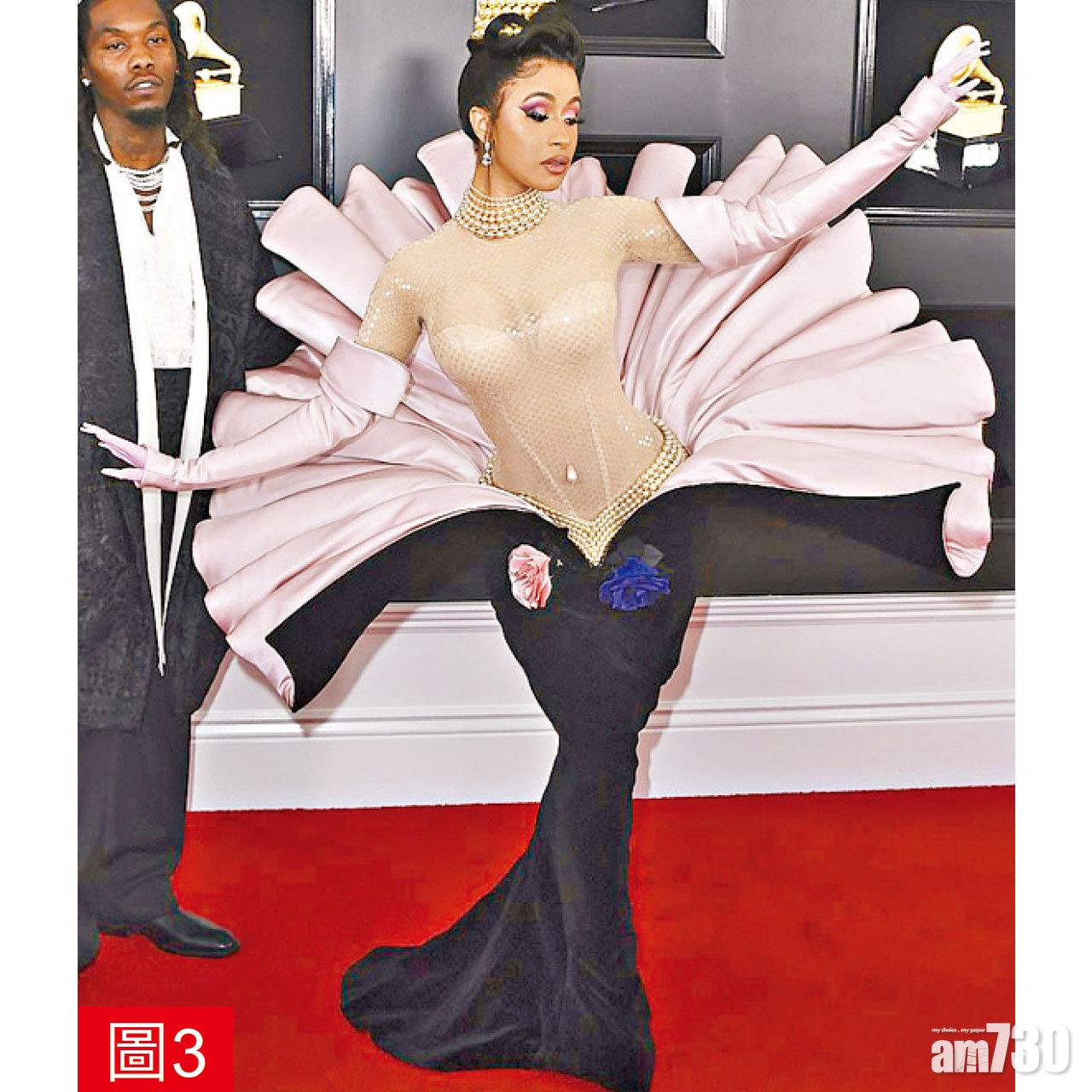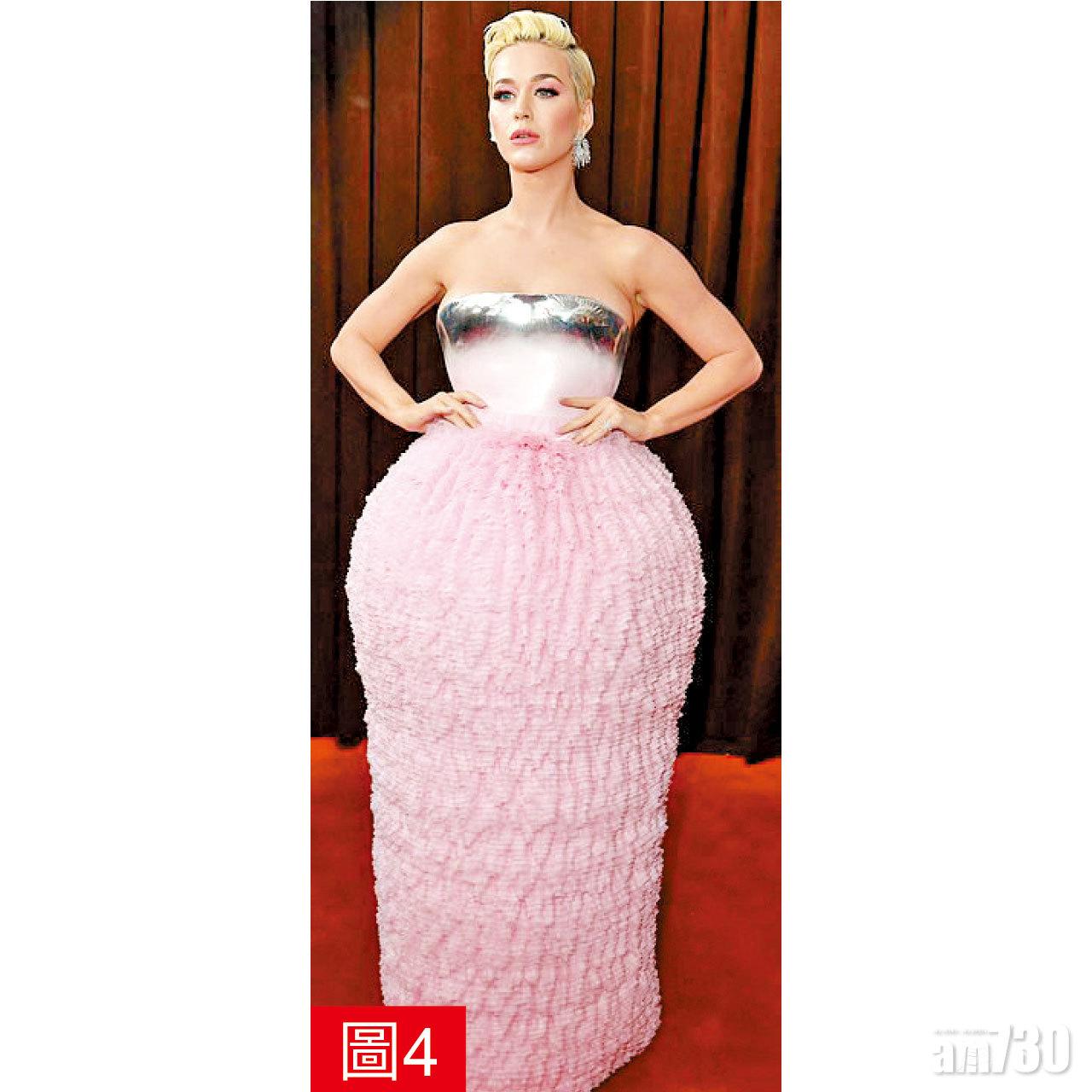 銀光閃爍的荷葉邊Celine晚裝,為Lady Gaga贏得一片掌聲(圖1)。反觀珍妮花洛庇絲的Ralph & Russo寶石裙(圖2),則慘遭滑鐵盧,被評為醜衣之首。需要5人扶助進場的Cardi B(圖3),蚌精似的卡通裝令她行動不便兼打入醜衣榜。Katy Perry的粉紅棉花糖晚裝(圖4)雖無過犯,卻被指只宜參加迪士尼茶會,出席盛典則嫌小家子氣。歌手Saint Heart蛻變拍翼彩蝶(圖5),俗氣爆錶,上榜實至名歸。化妝紅人Kylie Jenner乘興而來(圖6),卻因這套五花大綁連衣褲被彈到體無完膚,谷氣而回。