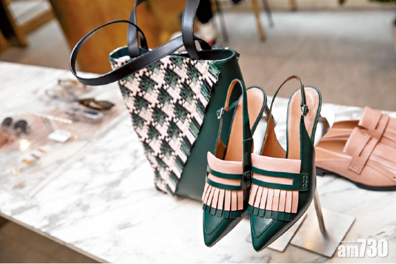 淡粉紅與深綠的撞色混搭,是大方的返工款式。 不少手袋及鞋履都加入編織元素,皮革與布料加上班馬圖案,交織出充滿夏日氣息的鞋款。