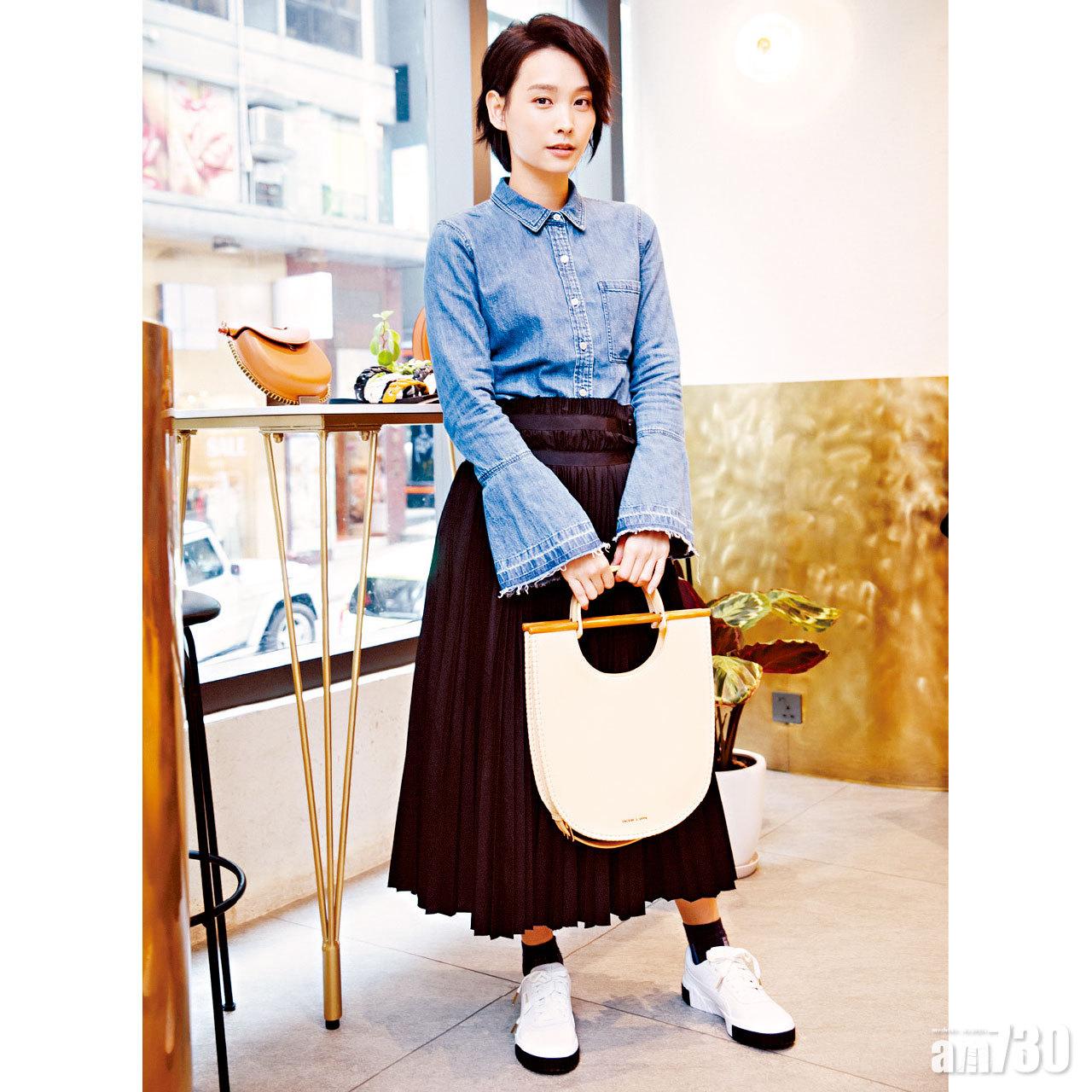 大膽剪裁的手袋,為造型添亮點。